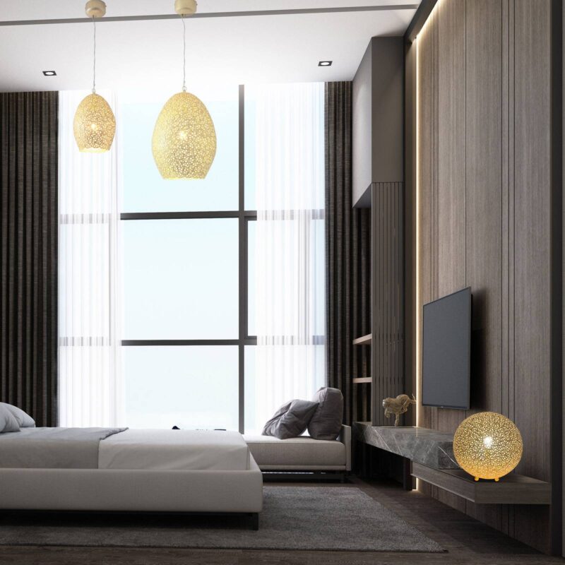 Stmievateľná stolová lampa Lily so sférickou železnou sieťovinou Guľovú guľu stolovej lampy Lily tvorí nepravidelná železná sieťovina s nespočetnými priestormi. Prostredníctvom toho svetlo padá smerom von a na osvetlenom interiéri vytvára ozdobné vzory. Či už na parapete alebo na stole v obývacej izbe alebo ako pútač očí na komode v hale, stolová lampa Lily uchváti svojou úžasnou svetelnou atmosférou na každom mieste.