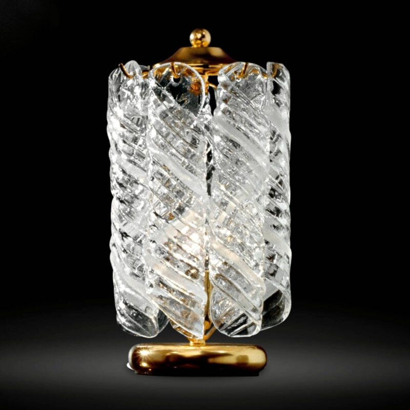 Klasická stolová lampa Molle so zlatou farbou Stolová lampa Molle má priemer 18 cm a výšku 27 cm. Vďaka tomu pôsobí malým a elegantným dojmom a neruší. Na druhej strane je aj dostatočne veľká na to, aby svojou 60 W žiarovkou jemne osvetlila okolie. Rám, ktorý je vidieť najmä na základni a v hornej časti, pozostáva z kovu, ktorý je pozlátený 24-karátovým zlatom. Okolo svietidla je niekoľko sklenených roliek.