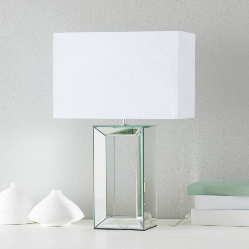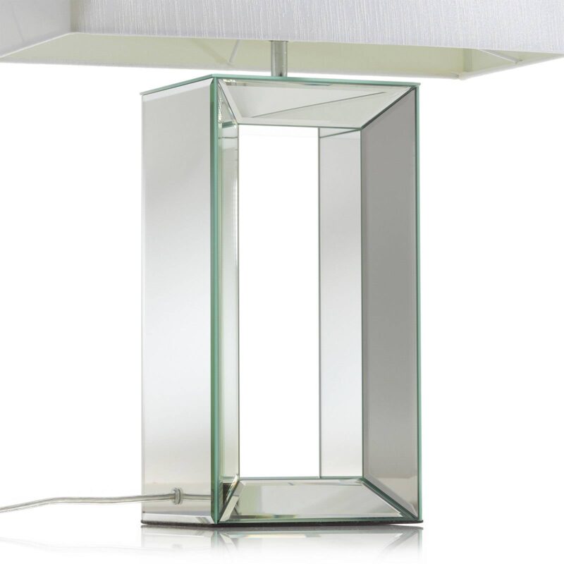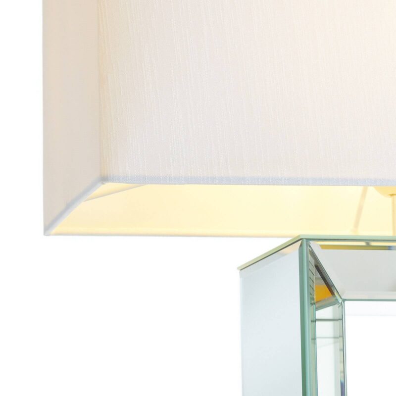 Elegantná stolná lampa Reflections so zrkadlovým sklom Stolnú lampu Reflections obklopuje decentná elegancia. Jej hranatý tvar vyžaruje moderný šarm, ale stolná lampa nájde to pravé miestno aj v iných štýloch zariadenia. Obzvlášť zaujímavo pôsobí kombinácia zo zrkadlového skleneného podstavca a bieleho tienidla z umelého hodvábu. Stolná lampa tak poskytuje príjemné svetlo, ktoré zdôrazňuje príjemné prostredie.