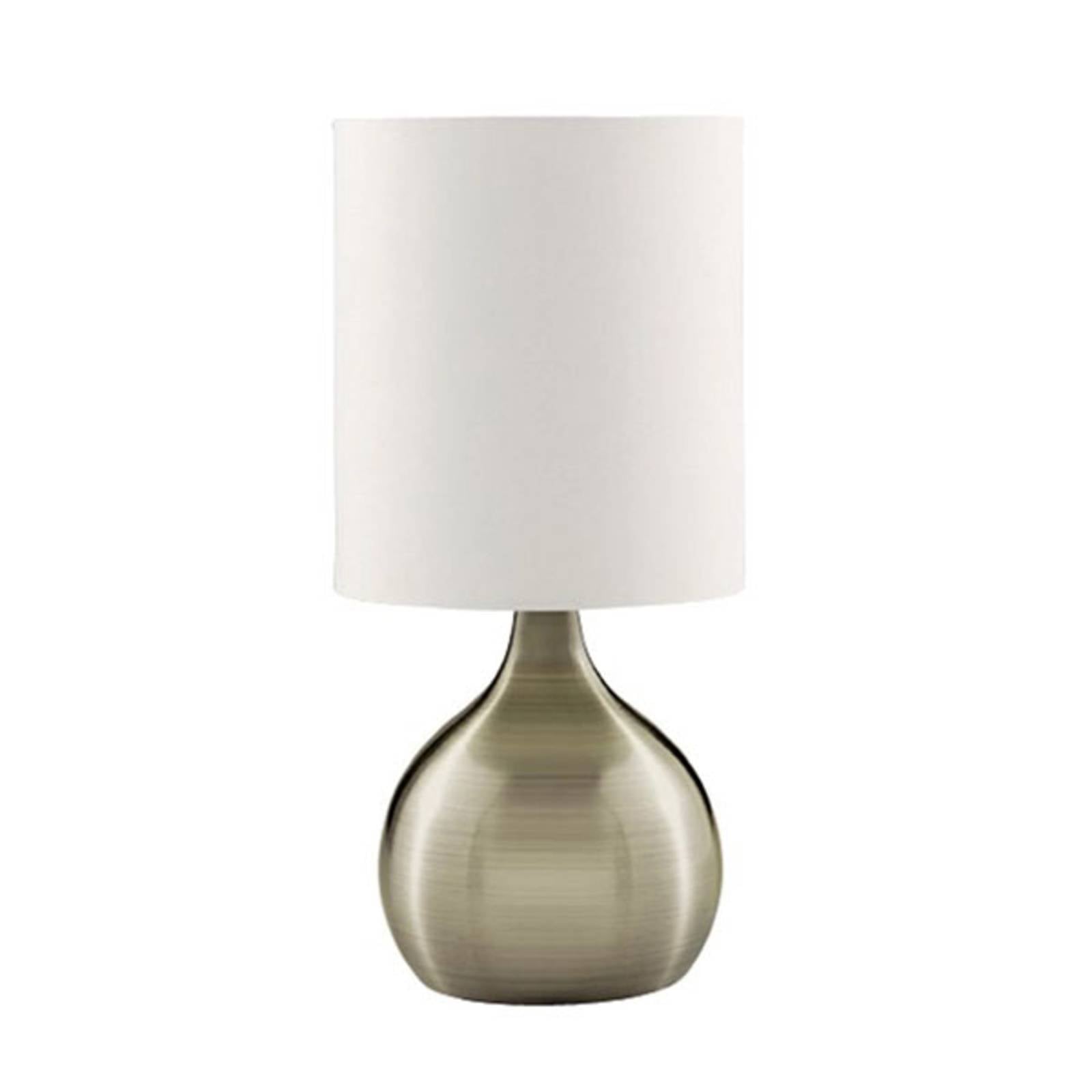 Stmievateľné v niekoľkých stupňoch – stolná lampa Touch 3923 Stolná lampa Touch 3923 má jednoduchý a elegantný dizajn. Dá sa výborne použiť ako malé doplnkové alebo ambientné svetlo, napríklad umiestnené na komode, príborníku alebo príručnom stolíku. Biele textilné tienidlo vytvára útulné svetlo, ktoré je rovnako doma v obývačke alebo spálni. Najdôležitejšia je tu však integrovaná dotyková funkcia: dotykom kovovej základne možno stolnú lampu Touch 3923 zapínať a vypínať a stmievať v troch stupňoch.