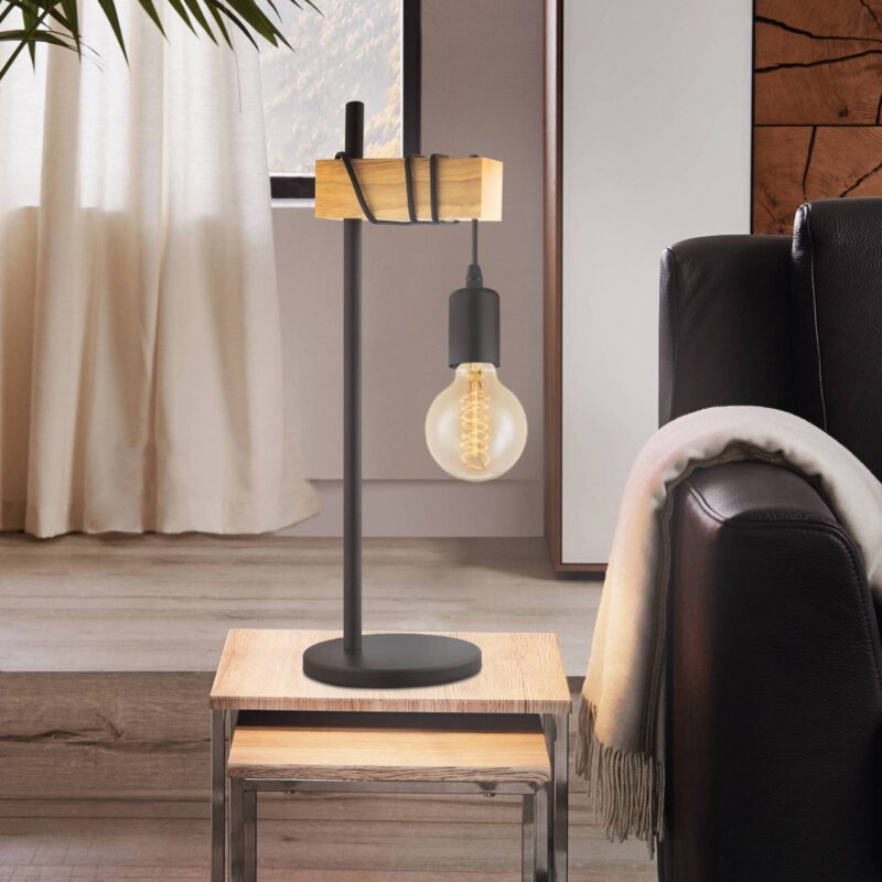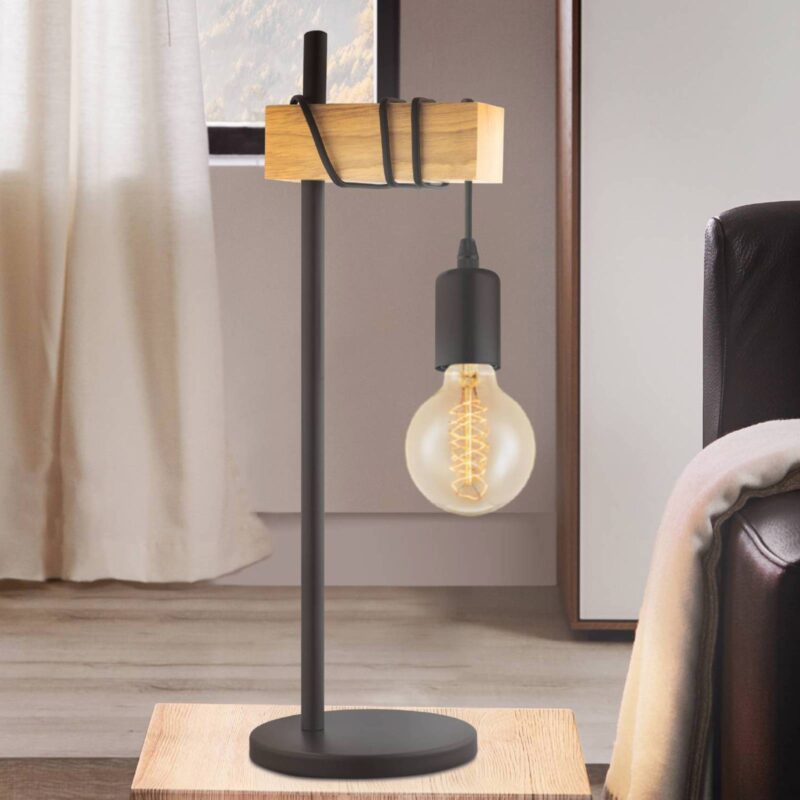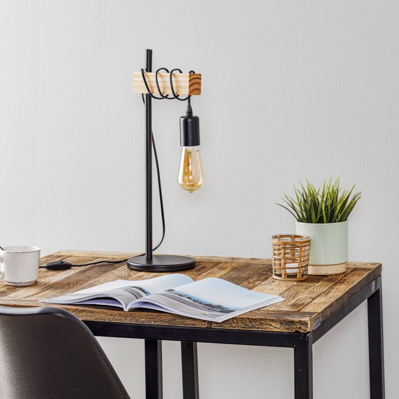 Stolové svietidlo Townshend v hnedej a čiernej farbe Tvarovo pekné stolové svietidlo Townshend sa vo vašom domove postará o žiarivé osvetlenie. Svietidlo žiari nielen vďaka svojej visiacej žiarovke, ale aj použitým materiálom, čiernej oceli a laserovanému drevu. Čierna noha pritom zabezpečuje dobrú stabilitu, zatiaľ čo kábel je niekoľkokrát omotaný okolo dreveného prvku, čím ideálne dopĺňa dizajn svietidla. Stolové svietidlo tak presviedča predovšetkým svojou kontrastnou koncepciou farieb a materiálov. Tento model v sebe spája prirodzenosť a industriálny šarm, čím vzniká bytový doplnok, ktorý sa vyznačuje útulnosťou a štýlom. Toto svietidlo šikovne doplní osvetlenie vo vašom domove, či už ho umiestnite na nočný alebo písací stolík. Váš domov ozdobí nielen ako svietidlo, ale aj ako ďalší dekoračný doplnok.