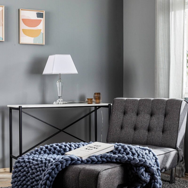 Stolná lampa Veronique úzky podstavec, biela/chróm