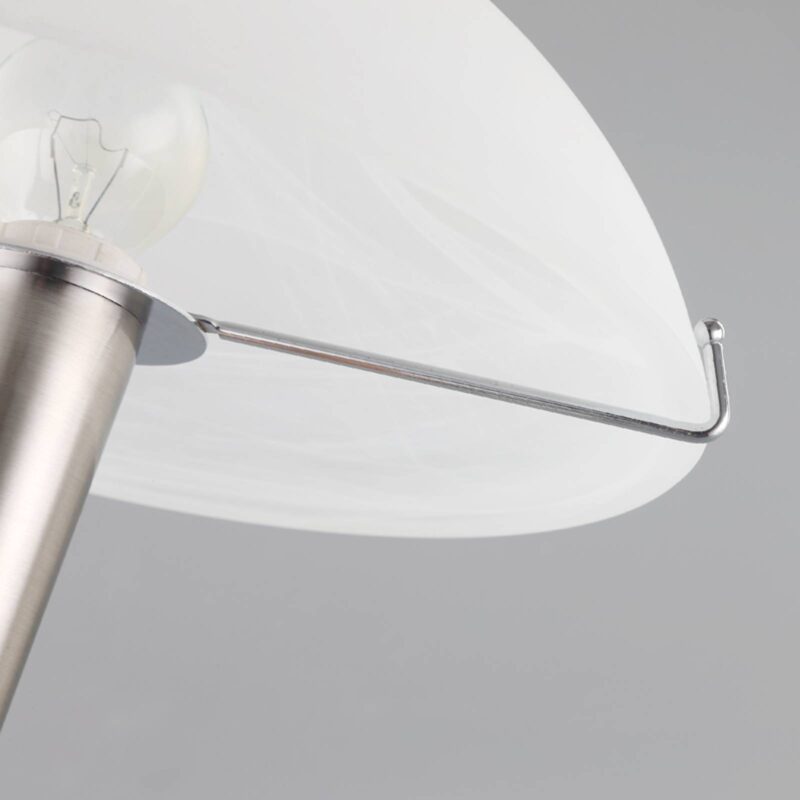 Stolové svietidlo Viola so skleneným tienidlom s alabastrovým vzhľadom Stolové svietidlá sa dobre hodia ako prídavné alebo zvýrazňujúce osvetlenie. To, samozrejme, platí aj pre stolové svietidlo Viola, ktoré pozostáva z bieleho alabastrového tienidla a kovovej konštrukcie s matným niklovým povrchom. Vďaka tienidlu, ktoré svojím alabastrovým vzhľadom pripomína hmlu, poskytuje veľmi príjemné, mäkké svetlo, ktoré zvyšuje mieru útulnosti miestnosti. Spínač je neviditeľne integrovaný do podstavca a umožňuje využívanie dotykovej funkcie, a tak sa svetlo zapína a vypína jednoduchým dotykom.