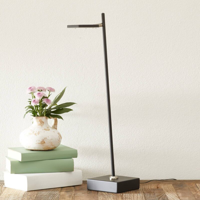 Stolná lampa Block LED – absolútne flexibilná a ovládateľná Stolná lampa Block je štýlový doplnok osvetlenia, ktorý vďaka svojmu minimalistickému vzhľadu dokonale zapadá do okolia a zaberá veľmi málo miesta. Je absolútne flexibilná aj z hľadiska orientácie. Flexibilné rameno sa dá otáčať o 360° a vďaka špeciálnemu držiaku na základni ho možno ľahko nakláňať. Uhlová hlava svietidla sa dá posúvať a nastavovať aj pomocou malého kĺbu na konzole. To poskytuje cielené, priame svetlo tam, kde je potrebné. Block je preto ideálny na osvetlenie pracovného stola. Jas stolnej lampy sa dá nastaviť aj pomocou integrovaného stmievača v hornej časti, čo umožňuje prispôsobiť ho situácii.