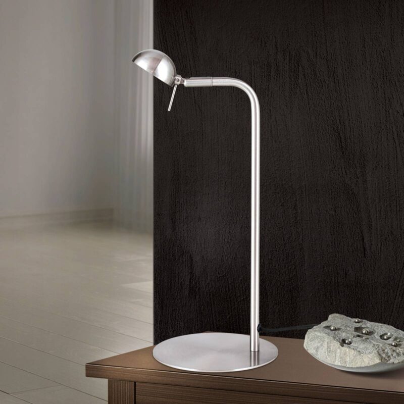 Jednoduchá stolová lampa LED Student s otočnou hlavou Minimalistická LED stolová lampa Student nie je určená len pre študentov. Jeho špecialitou je otočná a otočná hlava, pomocou ktorej je možné svetelný zdroj prispôsobiť okolnostiam. LED diódy poskytujú teplé biele svetlo bez oslnenia. Na napájacom vedení je prepínač, ktorý umožňuje pohodlné zapínanie a vypínanie, a kruhová pätica robí túto žiarovku veľmi stabilnou. Táto štíhla LED stolová lampa Student vďaka svojmu nadčasovému dizajnu vzdoruje rýchlo sa meniacim trendom a vždy vyzerá elegantne a profesionálne. Je veľmi vhodný ako lampa na stôl aj ako nočná lampa.