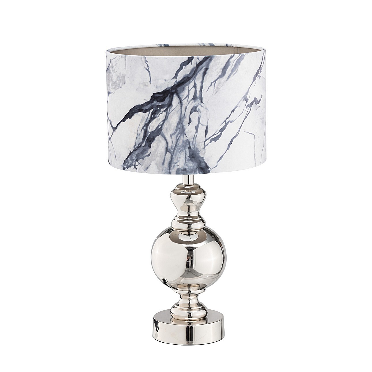Jedinečný dizajn – lampa v kombinácii lesklého kovu a mramorovanej látky na tienidle !Dokonalý doplnok klasického a elegantného štýlu, detaily dizajnu – pozri obrázkyZávit žiarovky E27, max. 60 W, dĺžka kábla cca 110 cmVeľkosť priemer základne 14 cm, výška 40 cm, priemer tienidla 30 cm, výška 21,5 cm, celková výška približne 55 cm