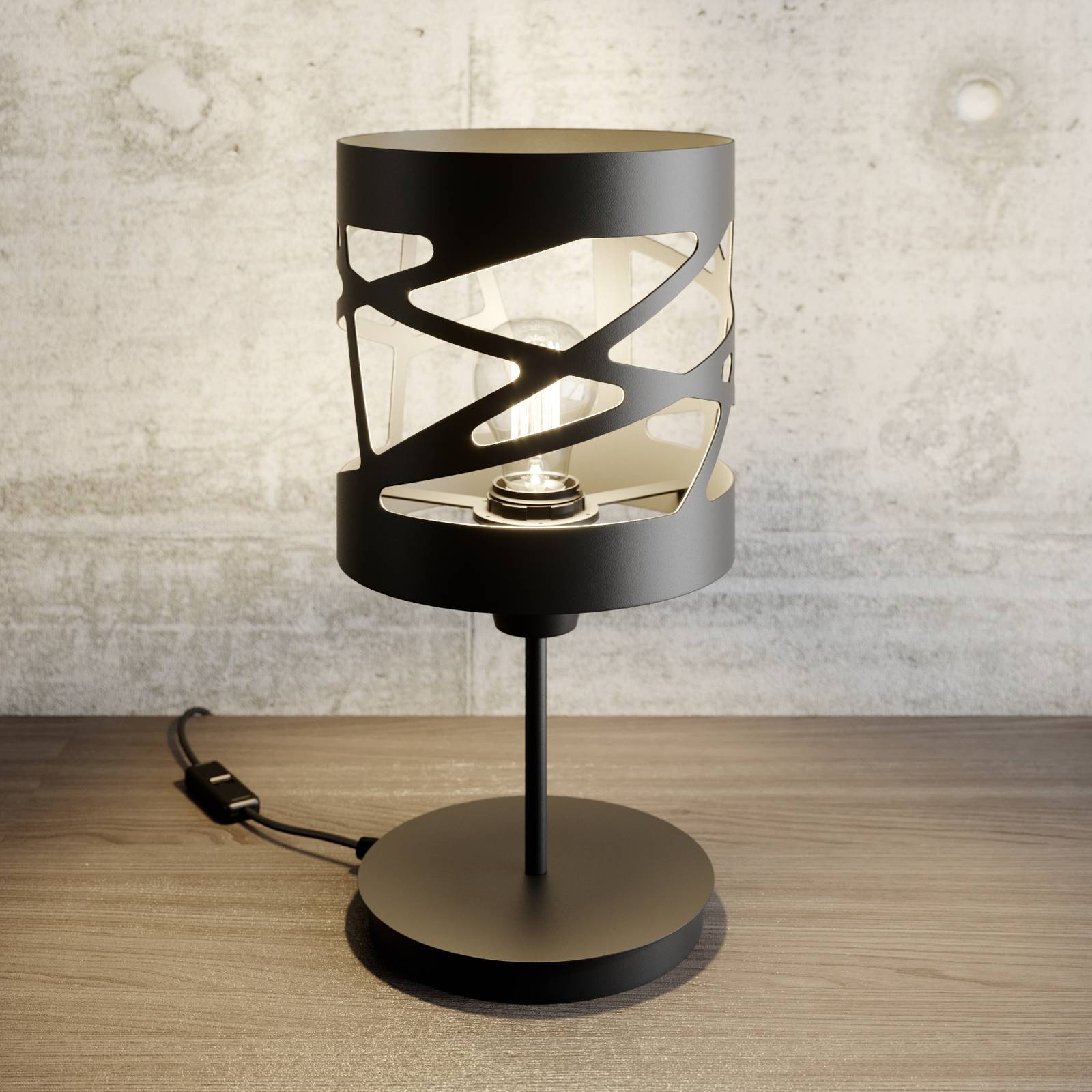 Stolová lampa Modul Frez so vzorovaným tienidlom: elegancia a univerzálnosť pre štýlové obývacie priestory Stolová lampa Modul Frez so vzorovaným tienidlom Ø17,5 cm v čiernej farbe spája moderný dizajn s funkčnou estetikou. Táto lampa je vyrobená z vysoko kvalitnej práškovo lakovanej ocele a ponúka nielen robustnú konštrukciu, ale aj nadčasovú eleganciu, ktorá sa dokonale hodí do rôznych štýlov interiéru. Čierna farba dodáva lampe elegantný nádych, ktorý vytvára harmonickú atmosféru v obývacej izbe, spálni alebo jedálni. Vďaka svojej univerzálnosti je stolová lampa Modul Frez Musterschirm ideálna pre rôzne priestorové riešenia. Či už ako akcentové osvetlenie na odkladacom stolíku alebo ako lampa na čítanie na nočnom stolíku, táto lampa ponúka flexibilné možnosti použitia. Kombinácia moderného štýlu a kvalitných materiálov z nej robí nepostrádateľný prvok pre náročné obývacie priestory.
