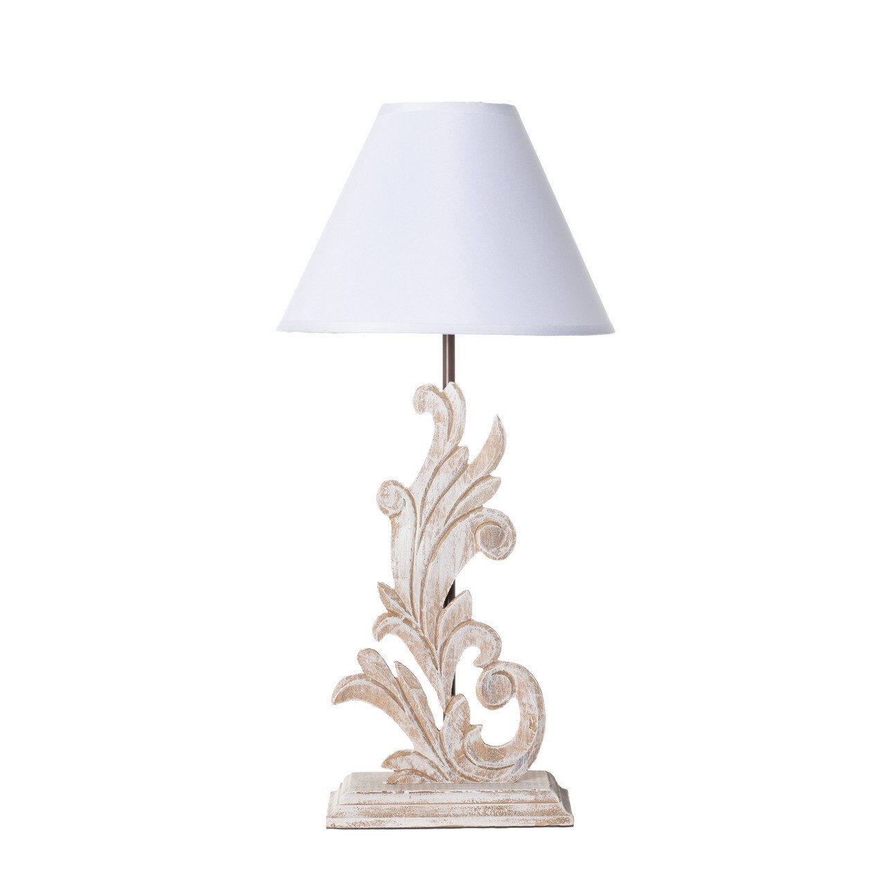 Stolová lampa s originálnym podstavcom s bielym látkovým tienidlom.Jedinečná stolová lampa so zaujímavým dizajnom a jednoduchým bielym tienidlom. Táto jedinečná a zároveň praktická dekorácia je ideálnym nápadom na vkusný doplnok obývačky alebo spálne. Drevený podstavec je obohatený o efekt starnutia. Lampa v rustikálnom štýle vyzerá v interiéri krásne a dodáva mu jedinečný charakter.Rozmery: priemer 25 cm, výška 53 cm.Vhodné pre žiarovku so závitom E27, max. 60 W (treba dokúpiť samostatne).