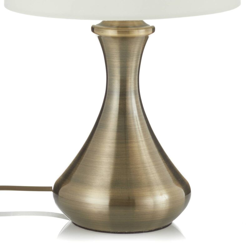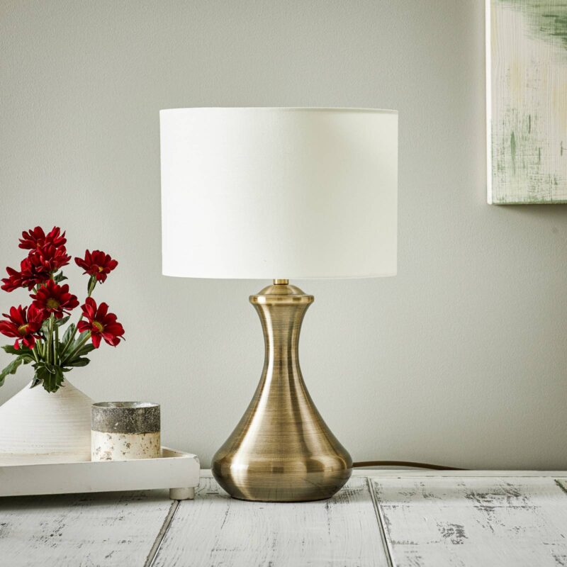 Elegantná stolová lampa Touch 2750 s bielym látkovým tienidlom Stolová lampa Touch 2750 vyžaruje jednoduchú eleganciu vďaka bielemu látkovému tienidlu a kovovej základni. Výborne sa hodí na doplnkové osvetlenie v moderných obývacích izbách, jedálňach alebo aj ako malý zdroj svetla, napríklad pri posteli v spálni. Rozhodujúcim faktorom je tu funkčnosť: stačí malý dotyk na podstavci stolnej lampy 2750 a lampu možno zapnúť a vypnúť vďaka integrovanej dotykovej funkcii, ako aj stmievať v troch úrovniach. Ide o ideálne osvetlenie na večerné čítanie, pretože nie je potrebné hľadať vypínač na kábli a na nastavenie svetla podľa vlastných potrieb stačí jeden pohyb ruky