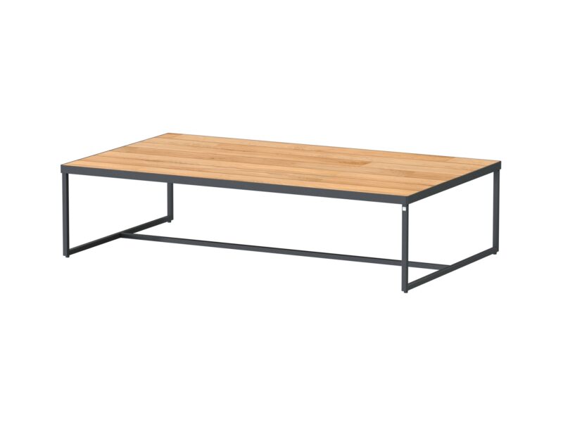 Štýlový konferenčný stolík Strada v kombinácii teakového dreva a nehrdzavejúcej ocele.