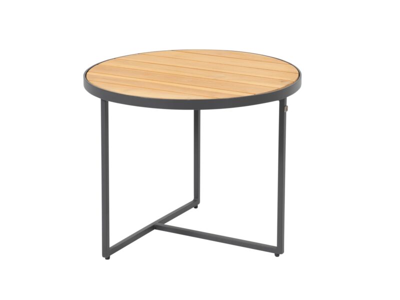 Štýlový príručný stolík Strada v kombinácii teakového dreva a nehrdzavejúcej ocele.