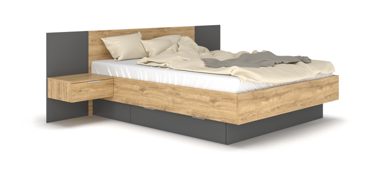 Spálňový sektor STREET je spojením moderného dizajnu, praktického prevedenia a priaznivej ceny. Vďaka zaujímavému farebnému prevedeniu dub - minerva sivá sa hodí do moderných aj klasických interiérov.Manželská posteľ STREET prekvapí svojím netradičným riešením,nakoľko je spojená po stranách s nočnými stolíkmi, ktoré sú v cene postele. Je vyrobená z kvalitnej LTD dosky.Súčasťou postele nie je rošt ani matrac, je potrebné ich dokúpiť v rozmere 160 x 200 alebo 2x 80 x 200 cm.Rozmery: (ŠxVxH): 262 x 89 x 204 cm.V našej ponuke nájdete aj ďalšie prvky sektoru STREET , vďaka ktorému si zariadite spálňu štýlovo a za priaznivú cenu.Dodávame v demonte.