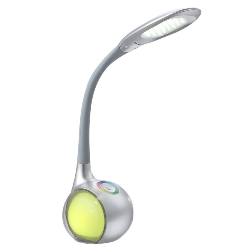 Praktické stolové LED svietidlo na písací stôl Paula Inovatívny dizajn svietidla neposkytuje len príjemné svetlo, ale je takisto vybavené rôznymi funkciami. Vďaka flexibilnému ramenu možno hlavu svietidla individuálne nasmerovať. Okrem toho má toto svietidlo integrovaný menič farieb v podstavci, ktorý je vďaka tomu osvetlený rôznymi farbami. Jednotlivé farby sa dajú zafixovať.