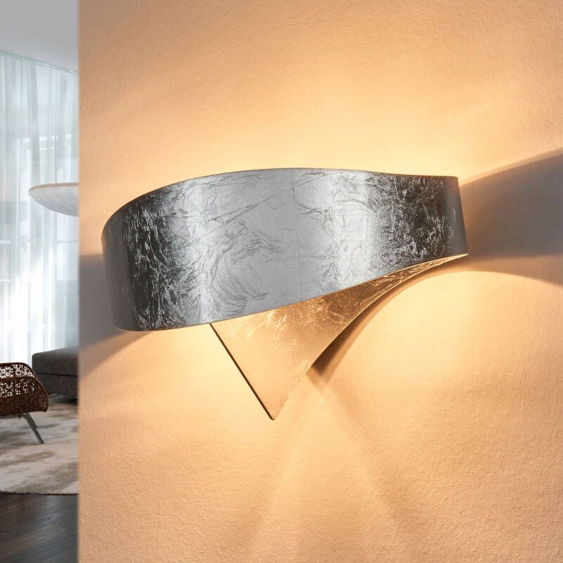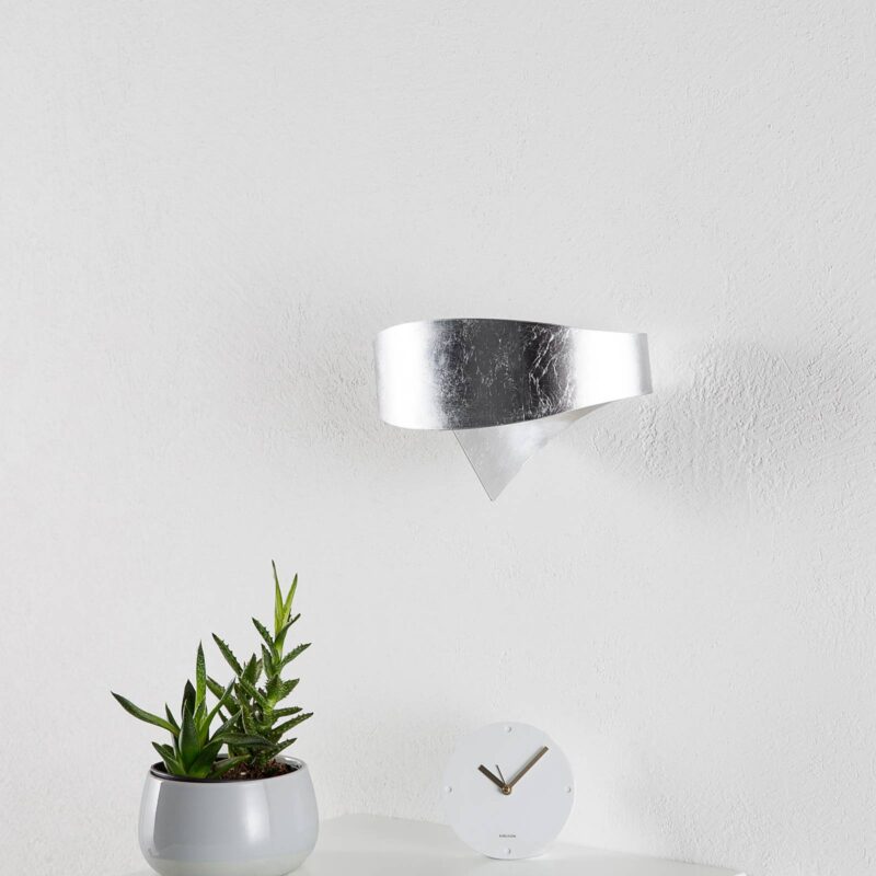 Nástenné svietidlo Scudo: ručne vyrobený dizajnový objekt Nielen zložitý výrobný proces, ale aj jeho výrazný dizajn robia z nástenného svietidla Scudo niečo výnimočné. Laserom sa vyreže vhodný pás ocele, ktorý sa potom ručne ohne do neobvyklého tvaru. Okrem toho je zakrivené svietidlo potiahnuté strieborným plátkom, aby sa ešte viac zvýraznil jeho vzhľad. Výsledkom je fascinujúci svetelný objekt, ktorý nemá konkurenciu.