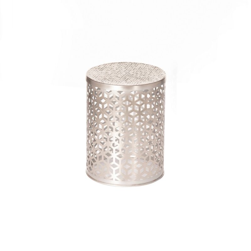 Originálny modernistický stôl v striebornej farbe. Ľahký, pútavý dizajn je vyrobený z poniklovaného kovu. Podstavec stolíka zdobený geometrickými vzormi mu dodáva moderný charakter. Ideálny na umiestnenie vedľa pohovky, kde poslúži ako pomocný stolík. Do súpravy odporúčame ďalšie stolíky z kolekcie Fabia, vďaka ktorým dosiahnete vo svojom interiéri úžasný efekt. Rozmery: priemer 31 cm, výška 41 cm. Materiál: kov. Farba: strieborná.