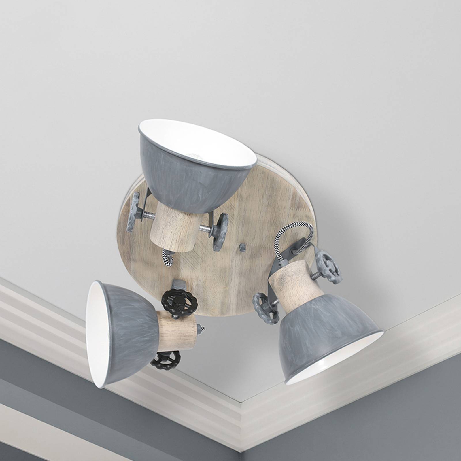 Stropné bodové svetlá Gearwood, 3-pl. okrúhle sivá