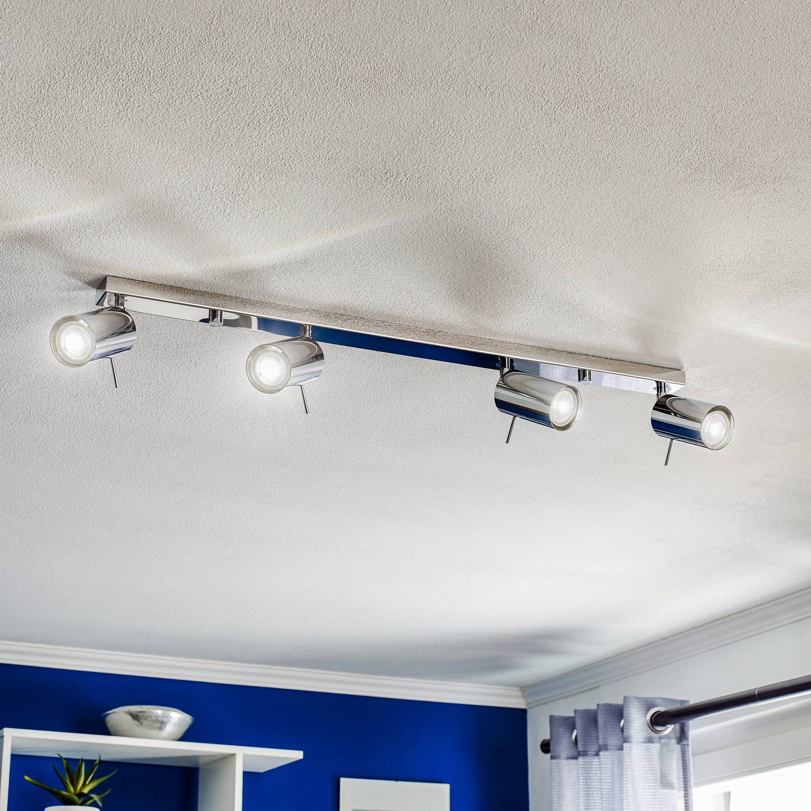 Stropné bodové svetlá Round, chróm, 4-plameňové lineárne