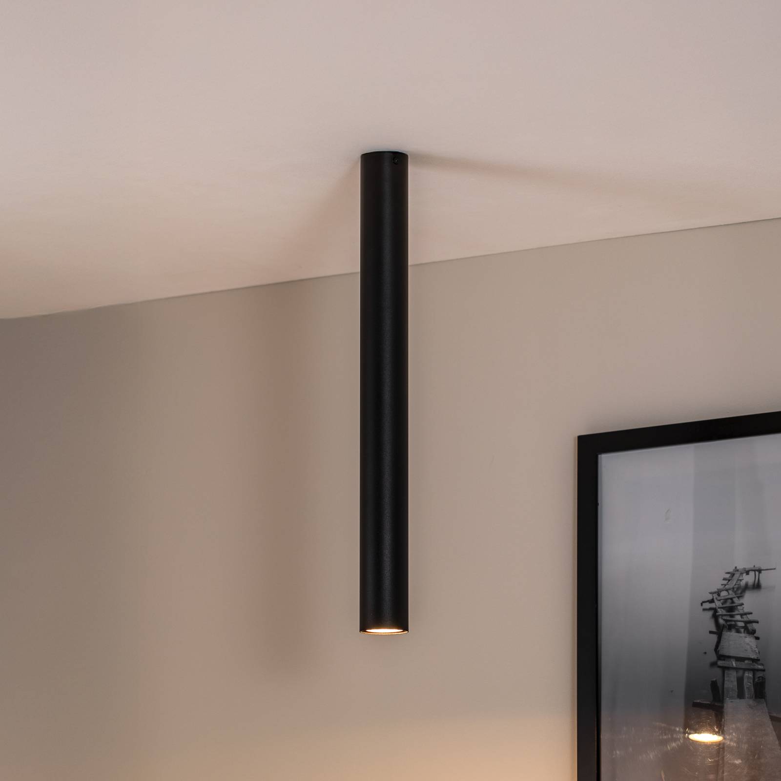 Stropné bodové svetlá Tecno 1XL, oceľ, GU10, výška 60 cm, čierna
