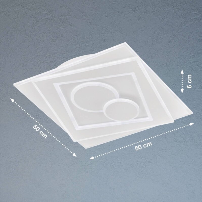 Biele stropné LED svietidlo Ratio v geometrickom dizajne Stropné LED svietidlo Ratio v nadčasovom dizajne je nielen dobrým systémom osvetlenia, ale aj vizuálnym obohatením každého obytného priestoru. Pomocou dodaného diaľkového ovládača možno farbu svetla nastaviť v troch stupňoch podľa potreby. Vzor na osvetlenom povrchu tvoria štvorce a kruhy, ktoré spolu nádherne ladia. Vzor zahalí miestnosť do príjemného nepriameho svetla. Vďaka svojmu nadčasovému dizajnu svietidlo bez problémov zapadne do každého interiéru.