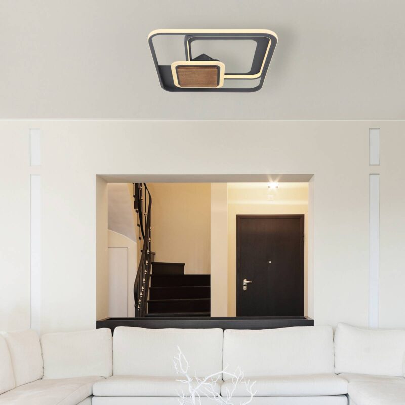 Stropné LED svetlo Nirra drevená doska 3pl hranaté