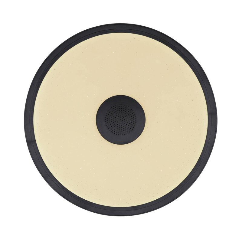 Stropné svietidlo Raffy LED z plastu s praktickými funkciami Raffy má pomerne jednoduchý dizajn z plastu, ale má niekoľko funkcií, ktoré z neho robia užitočného všestranného pomocníka. Jeho trvalo nainštalované LED diódy sú umiestnené za opálovým difúzorom a možno ich stmievať pomocou diaľkového ovládania, ovládať ich farbu svetla (teplá biela až denné svetlo) a svietiť rôznymi farbami (RGB). V jeho strede sa nachádza aj reproduktor, ktorý možno ovládať pomocou Bluetooth a prehrávať hudbu podľa vlastného výberu. Stropné svietidlo Raffy LED je skvelým doplnkom interiéru, vďaka jednoduchému dizajnu sa ľahko integruje do nábytku a vytvára vhodnú atmosféru.