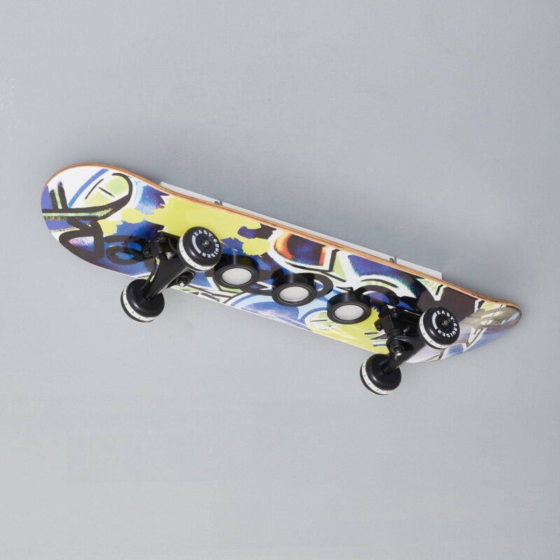Stmievateľné stropné LED svietidlo Easy Cruiser Graffiti vo vzhľade skejtbordu vrátane diaľkového ovládania Modrý skejtbord s graffiti dizajnom je už sám o sebe pútavým prvkom, no keď ešte aj visí na strope v izbe a osvieti sa niekoľkými spôsobmi, ide o absolútny vizuálny zlatý klinec v detskej izbe. Skejtbord je vybavený siedmimi zdrojmi svetla, ktoré možno zapnúť a vypnúť pomocou dodávaného diaľkového ovládania. U troch LED bodových svetiel, ktoré sú nainštalované v spodnej časti s graffiti potlačou, môžete stmievať aj jas. Farebné akcenty kladú RGB LED Flexstrips, ktoré sú upevnené na kolieskach a ktoré je možné prepínať samostatne. Stropné svietidlo Easy Cruiser Graffiti nadchýna svojím moderným dizajnom a rôznymi LED osvetleniami malých a veľkých fanúšikov skejtbordingu.