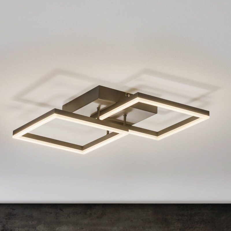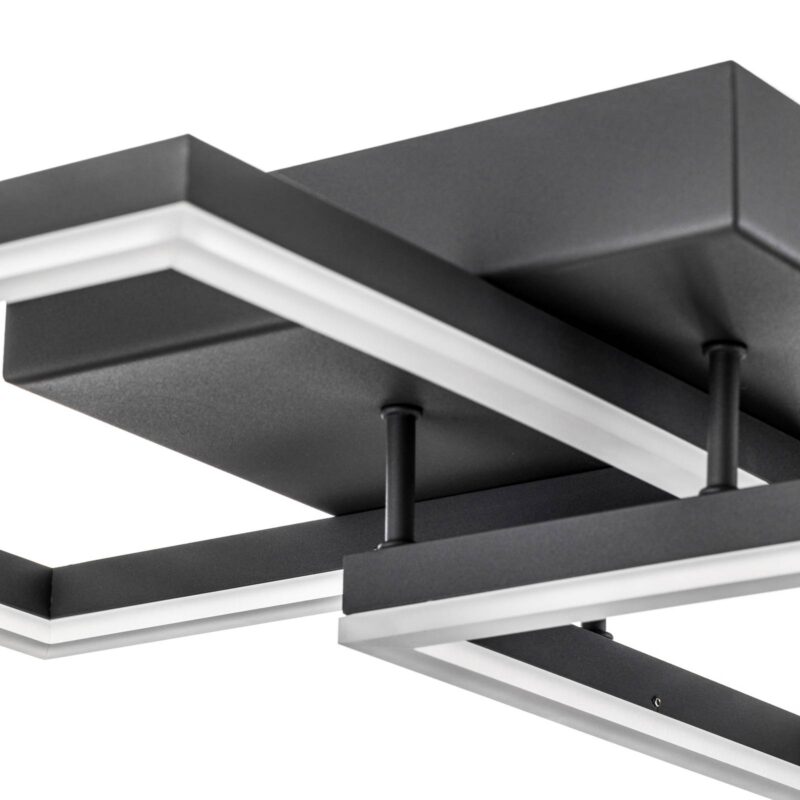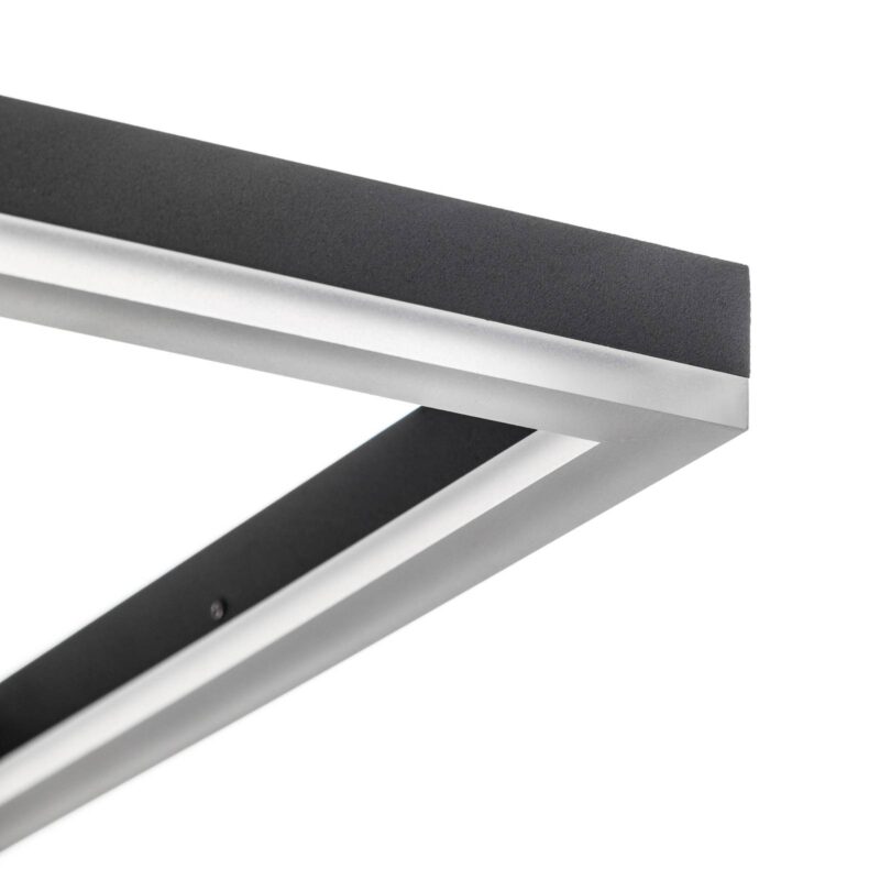Stropné LED svietidlo Bard antracitovej farby Veľké stropné LED svietidlo Bard v modernom dizajne sa dá ľahko stmievať pomocou externého stmievača. Osvetlenie miestnosti ostáva flexibilné. Rámové svetlo osvetľuje miestnosť teplým bielym príjemným svetlom. Vďaka jednoduchému dizajnu z moderných tvarov, materiálov a farieb je svietidlo všestranne kombinovateľné. Skutočné svietidlo, pripevnené k stropu štvorcovým telom v antracitovej, pozostáva z dvoch prekrývajúcich sa štvorcových rámov. Svetelné telesá sú orámované antracitovo sivým kovom, a preto pôsobia decentne a elegantne. Každá miestnosť tak nadobúda moderný koncept osvetlenia, ktorý sa rýchlo stáva pútavým prvkom.