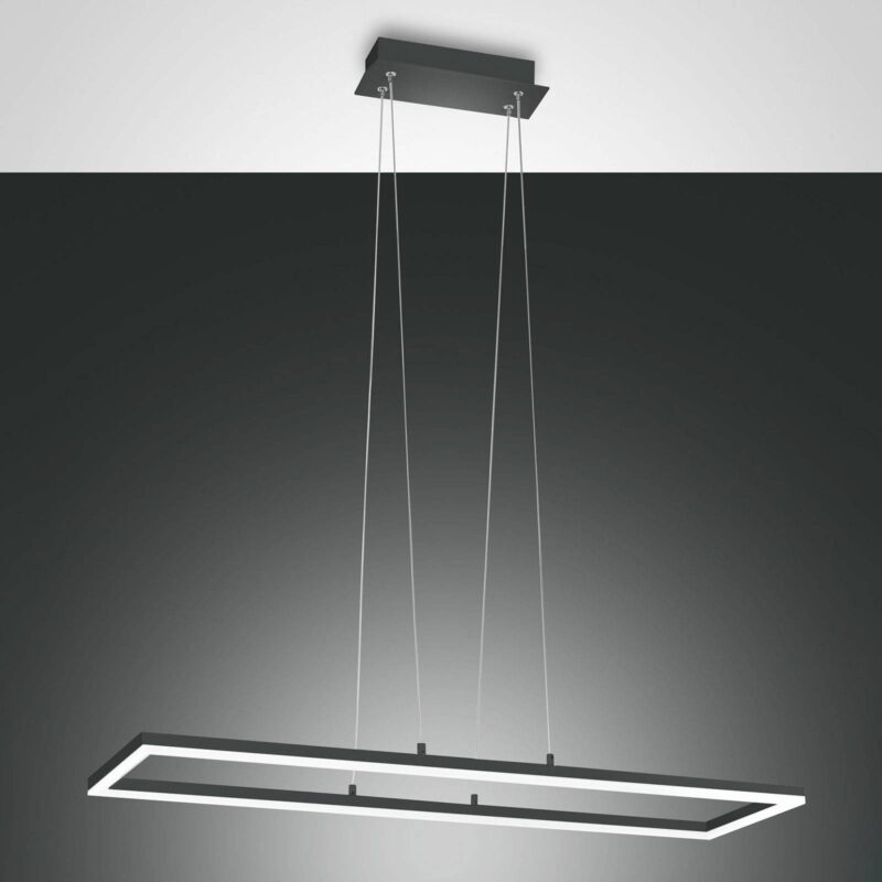 Uhlové závesné LED svietidlo Bard v antracitovej farbe LED závesná lampa Bard od Fabas Luce je vyrobená z vysoko kvalitných materiálov a vyžaruje zdržanlivé teplé biele svetlo. Vďaka svojmu jemnému dizajnu možno stmievateľné rámové svetlo ľahko integrovať do rôznych druhov nábytku a životných štýlov. Obdĺžniková rámová lampa je pripevnená k ozdobnému zaveseniu lana a zasadená do kovového rámu. Vstavané LED diódy pod metakrylátovým krytom je možné podľa potreby stlmiť. Tenký dizajn, vysoké svetelné vyžarovanie LED diód a moderná konštrukcia umožňujú optimálne osvetlenie okolia a robia z prívesnej žiarovky estetický doplnok v najrôznejších obytných priestoroch.