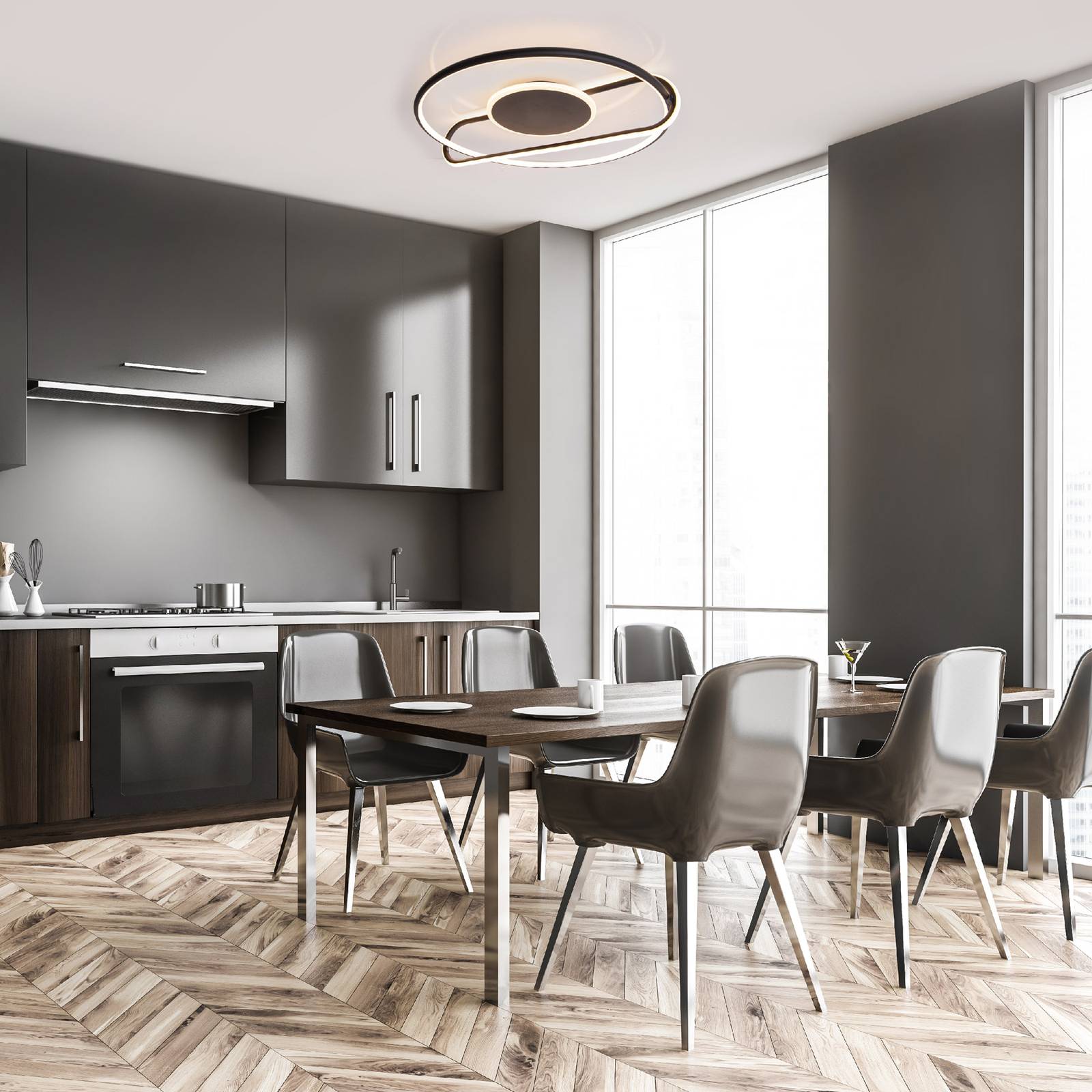 Stropné LED svietidlo Brendan, Ø 54 cm, čierna