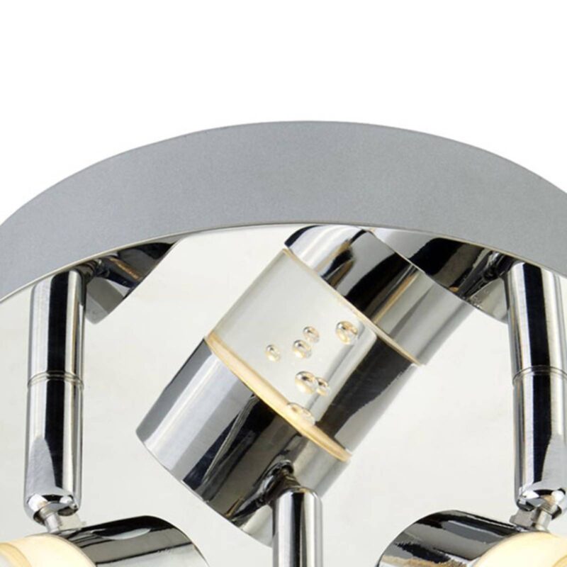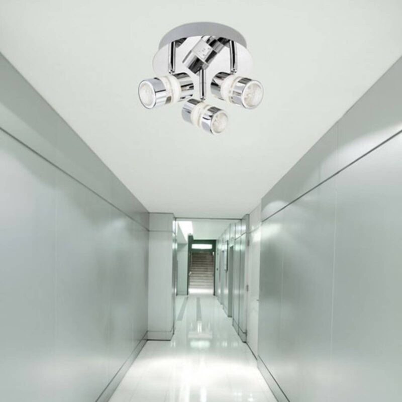 Moderné kruhové – LED stropné svietidlo Bubbles v chrome Súčasťou výbavy tohto moderného stropného svietidla, ktoré je možné vďaka triede ochrany IP44 bez váhania použiť v kúpeľni, sú tri LED reflektory. Vstavané LED diódy tu svietia príjemnou teplou bielou farbou a zaisťujú jemné, ale jasné a rovnomerne svietiace svetlo. Vďaka nastaviteľnosti malých bodových svetiel je možné svetlo smerovať aj do každého rohu miestnosti.