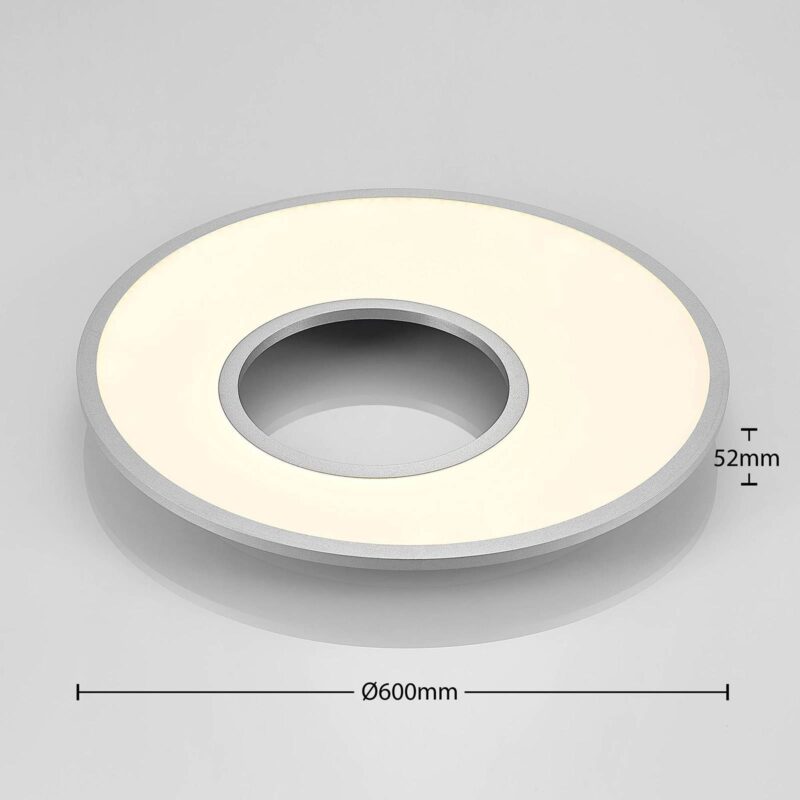 Okrúhle LED stropné svietidlo Durun s okrúhlym otvorom, funkciou zmeny farieb a diaľkovým ovládaním LED stropné svietidlo Durun dokáže vytvárať vysokú mieru jasu a dá sa nastavovať pomocou pribaleného diaľkového ovládania. Externý nástenný vypínač umožňuje prispôsobovanie farby svetla na troch úrovniach – teplá biela, univerzálna biela a denné svetlo. Diaľkové ovládanie sa používa na nastavovanie jasu buď plynule od 10 do 100 %, alebo po 15 malých krokoch. Pokiaľ ide o farbu svetla a tiež o jas, svietidlo má pamäťovú funkciu, aby sa vybrané nastavenia nestratili, keď sa svetlo znovu zapne. Okrem toho sa LED stropné svietidlo Durun sa môže prevádzkovať aj v režime nočného svetla alebo s funkciou 15 minútového časovača.