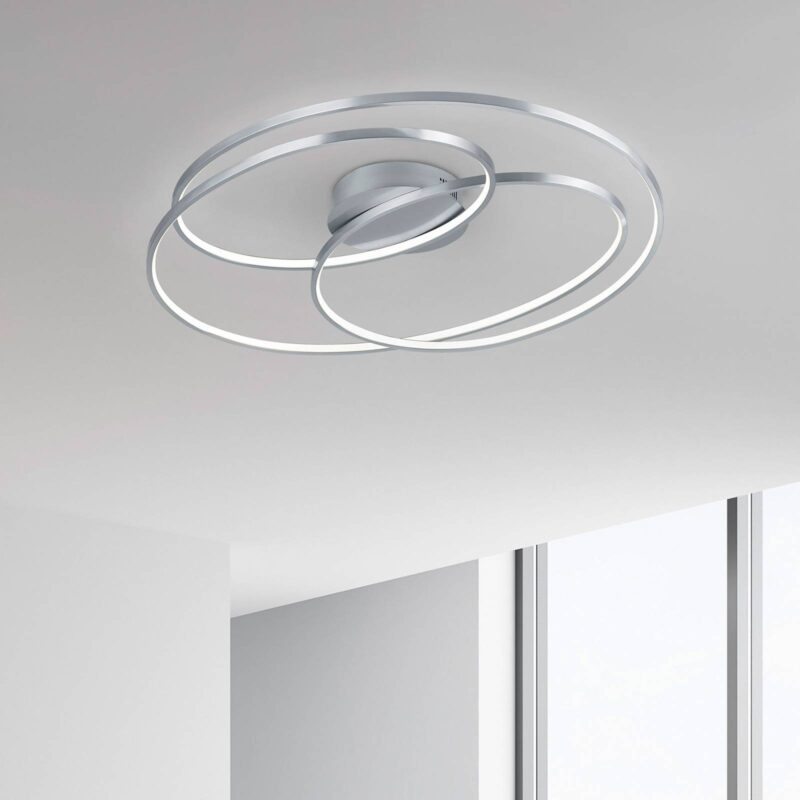 Pôvodne navrhnuté LED stropné svietidlo Gale – vypínač dim Vďaka stropnému LED svetlu Gale tienidlo na lampu , ktorá sa skladá z kovového pásu, hadí dole zo stropu a poskytuje všestranné a veľmi efektívne osvetlenie miestnosti. Príjemne teplé biele LED diódy generujú vysoký svetelný tok pri nízkej spotrebe energie súčasne. Vďaka zabudovanej funkcii stmievania spínača sa dá jas ľahko prispôsobiť situácii pomocou bežného nástenného spínača: ak je spínač stlačený raz, svetlo svieti so 100% jasom, ak je prepnuté dvakrát s 50% jasom a ak je spínač stlačený trikrát, je stále dosiahnuté 25% svietivosti. Pokiaľ ide o štýl, stropné svetlo Gale LED sa hodí k mnohým možnostiam vybavenia.