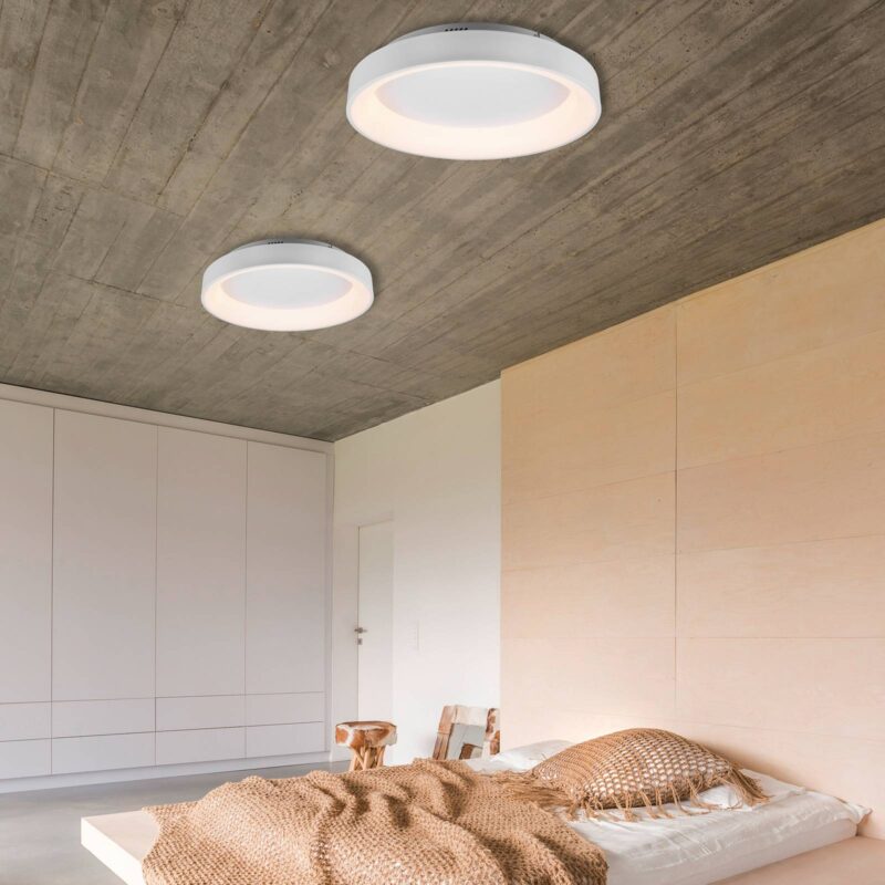 Moderné stropné svietidlo LED Girona s diaľkovým ovládaním Stropné svietidlo LED Girona spája vysokú funkčnosť so zníženým dizajnom a dobre zapadne do každého obytného prostredia. Možno ho použiť ako moderné svietidlo v obývacej izbe alebo jedálni, prípadne ako zdroj svetla na strope spálne. Keďže má funkciu nočného svetla, je rovnako vhodný na použitie na chodbe alebo v detskej izbe. Aby sa na danom mieste vždy zabezpečili optimálne svetelné podmienky, farba svetla je plynulo nastaviteľná a siaha od príjemného teplého bieleho svetla až po jasné denné svetlo. Okrem toho má svietidlo Girona pamäťovú funkciu, vďaka ktorej sa pri opätovnom zapnutí stropného svietidla použije posledné použité nastavenie svetla. Integrovaný stmievač navyše umožňuje meniť intenzitu svetla a prispôsobiť ju individuálnym potrebám. Lampa sa ovláda diaľkovým ovládačom (je súčasťou dodávky). – Plynulé stmievanie – plynulé nastavenie farby svetla – Pamäťová funkcia (pri opätovnom zapnutí sa zachová posledné zvolené nastavenie svetla) – Funkcia nočného svetla