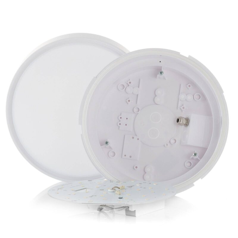 Stropné LED svietidlo Haton so stupňom ochrany IP65 Stropné LED svietidlo Hatton má jednoduchý okrúhly tvar, preto sa dá použiť na mnohých miestach. Vyžaruje príjemné teplé biele svetlo a dodáva sa spolu so zabudovaným budičom. Pretože je navyše vybavené stupňom ochrany IP65, môže sa bez problémov použiť v kúpeľni a v pivnici. Stropné LED svietidlo Hatton je vyrobené v Taliansku a obsahuje diódy LED značky Osram. – trieda ochrany II – 3 000 kelvinov – 220 – 240 V AC