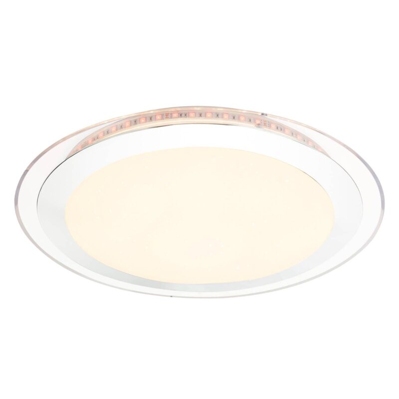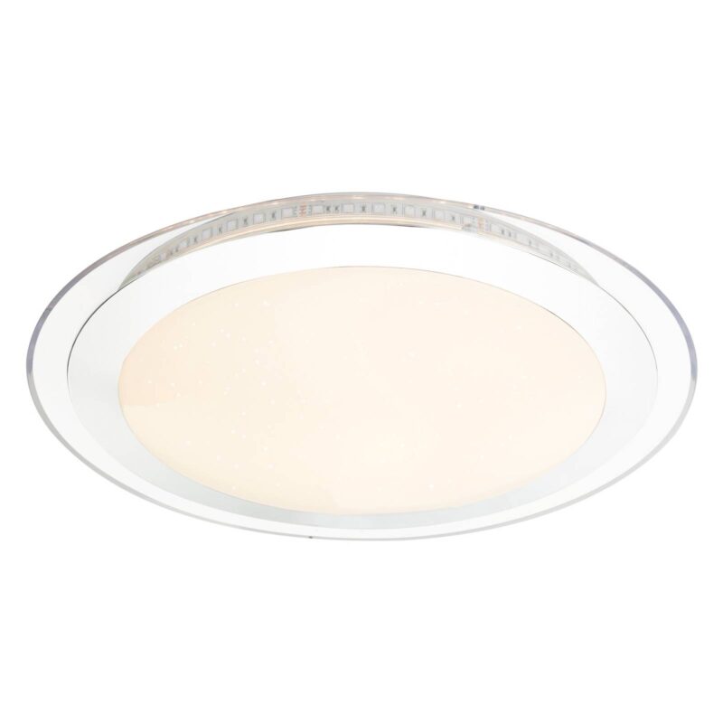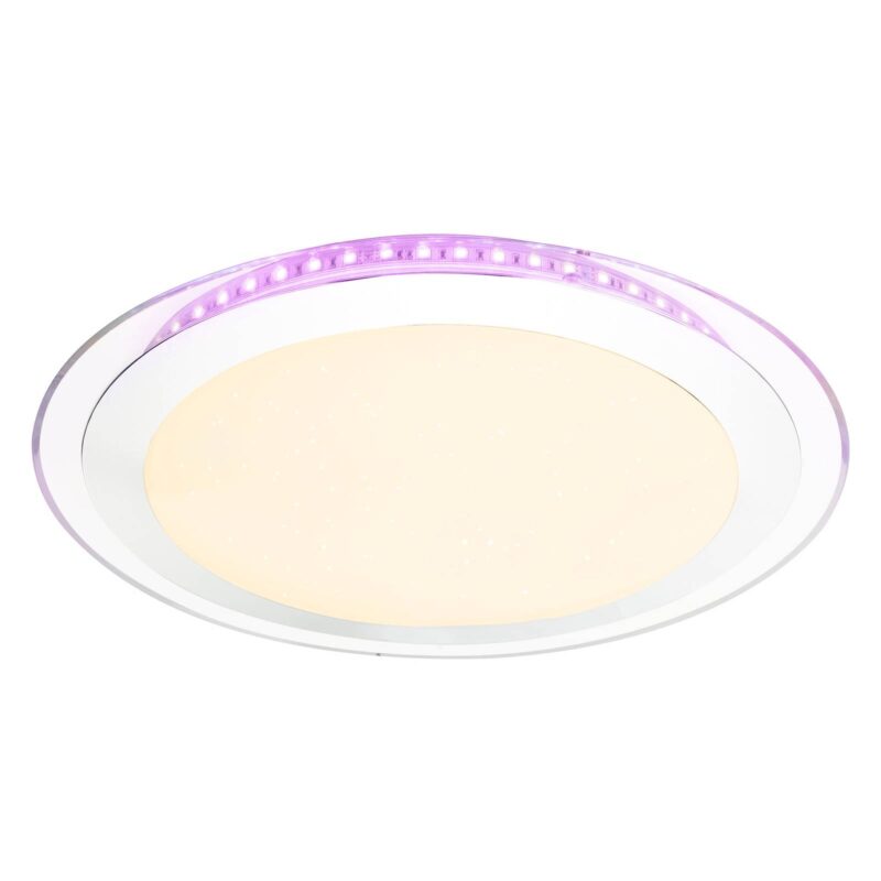 Okrúhle stropné LED svietidlo Nicole II s funkciou zmeny farby Vďaka jednoduchému dizajnu a nenápadnej farebnej schéme možno stropné svietidlo Nicole II LED ľahko integrovať do rôznych obytných prostredí. Môže osvetľovať napríklad obývaciu izbu alebo kuchyňu, ale rovnako dobre poslúži aj ako funkčný zdroj svetla v spálni alebo v detskej izbe. Vizuálnym vrcholom je integrovaný trblietavý dekor, ktorý po zapnutí svietidla vyvolá efekt hviezdy. Stropné svietidlo sa ovláda pomocou priloženého diaľkového ovládania. Farba svetla sa dá meniť od teplej po dennú bielu a je možné nastaviť aj jas lampy. Miestnosť je tak vždy optimálne osvetlená a svetlo sa prispôsobuje osobným potrebám. Pomocou meniča farieb RGB možno na okraji svietidla nastaviť farebný akcent, ktorý vytvorí v miestnosti výnimočnú atmosféru. Ďalšími praktickými funkciami sú pamäťová funkcia, ktorá sa po zapnutí svietidla vráti k poslednému zvolenému nastaveniu, a funkcia nočného svetla, ktorá umožňuje orientáciu v tme.