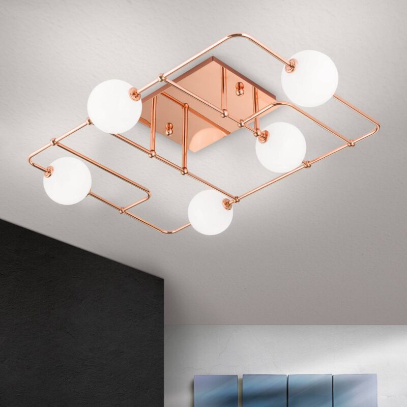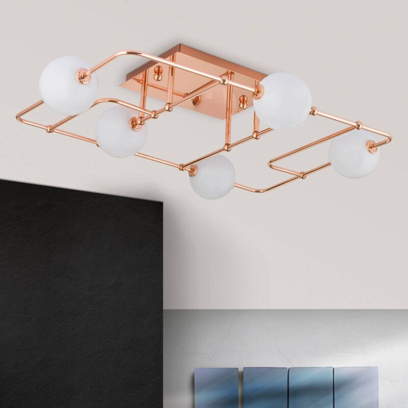 Stropné LED svietidlo Pipes v medi sklenené gule