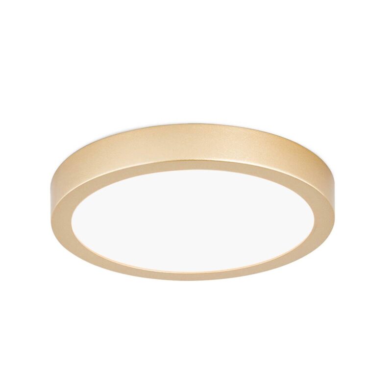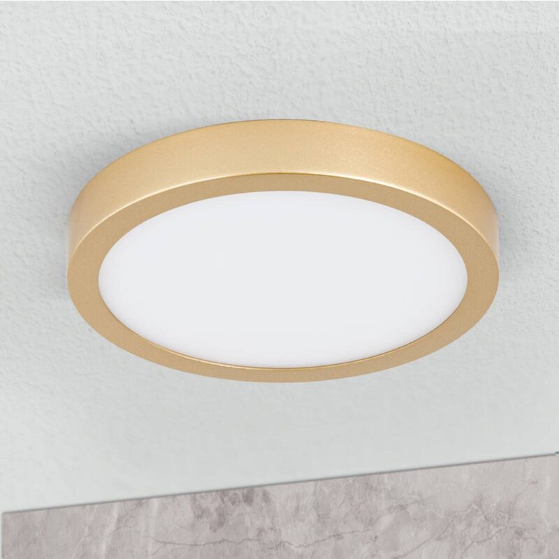 Vika – LED stropné svietidlo s matným zlatým lakom LED stropné svietidlo Vika si vás v prvom rade získa svojím veľmi plochým dizajnom – má výšku iba 2,4 cm. Okrem toho je to veľmi flexibilný zdroj svetla, pretože sa dá použiť na jednej strane v rôznych miestnostiach a na druhej strane v kombinácii s mnohými štýlmi. Okrúhla konštrukcia je vyrobená z odolného hliníka natretého matným zlatým lakom. Biela satinovaná difúzna doska zaisťuje plošný rozptyl svetla, vďaka čomu je svietidlo Vika použiteľné najmä ako všeobecné osvetlenie obytných priestorov, ako sú napríklad chodby či dielne. Svietidlo je vhodné na montáž na strop aj na stenu, čo prispieva k jeho flexibilite. Montážne komponenty a skrutky nie sú viditeľné zvonku!