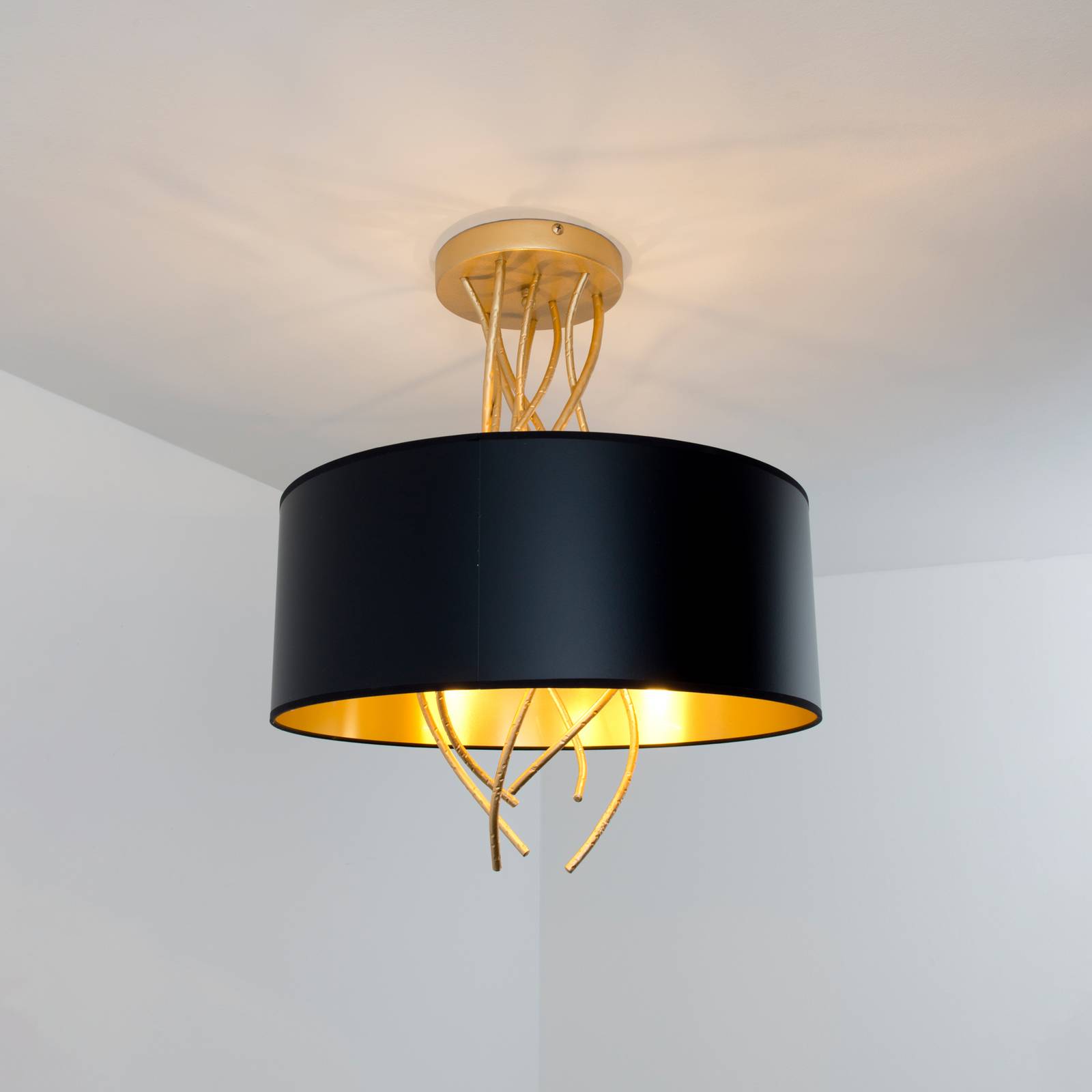 Stropné svetlo Elba Ø30cm tri objímky čierna/zlatá