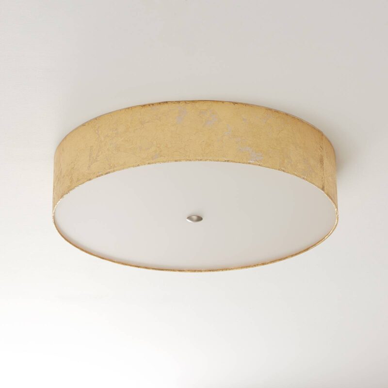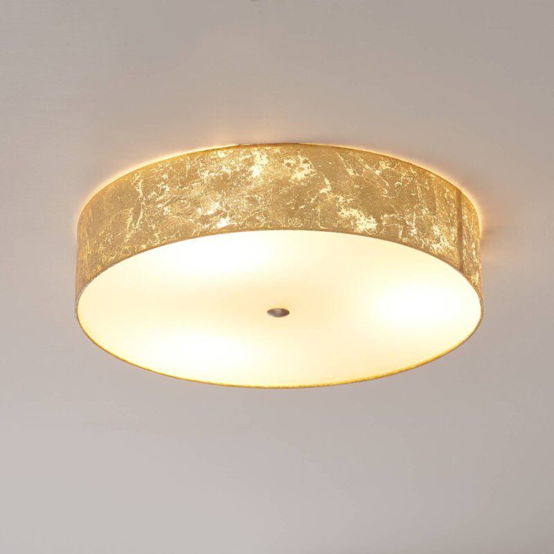 Exkluzívne stropné svietidlo Alea Loop so zlatým poťahom Stropné svetlo Alea Loop pôsobí veľmi ušľachtilo. Guľatá lampa má výrazný a vysoko kvalitný okolitý krúžok s povrchovou úpravou zlatými listami. Vyžaruje to lesklé odlesky a pôsobí naozaj elegantne. Sklenená clona je vyrobená z akrylového bieleho satinovaného skla. Poskytuje neoslnivé a upokojujúce svetlo. Krásna stropná lampa je napájaná tromi svetelnými zdrojmi E27. Alea Loop možno používať mnohými spôsobmi. Uplatnenie si nájde v obývačke aj na chodbe. Efektívne osvetľuje priestrannú halu. Lampa so zlatým efektom si nájde svoje uplatnenie aj v spálni. Stropné svietidlo Alea Loop je vysokokvalitná a pragmatická v jednom. To jej dáva zvláštnu atraktivitu. Made in Germany.