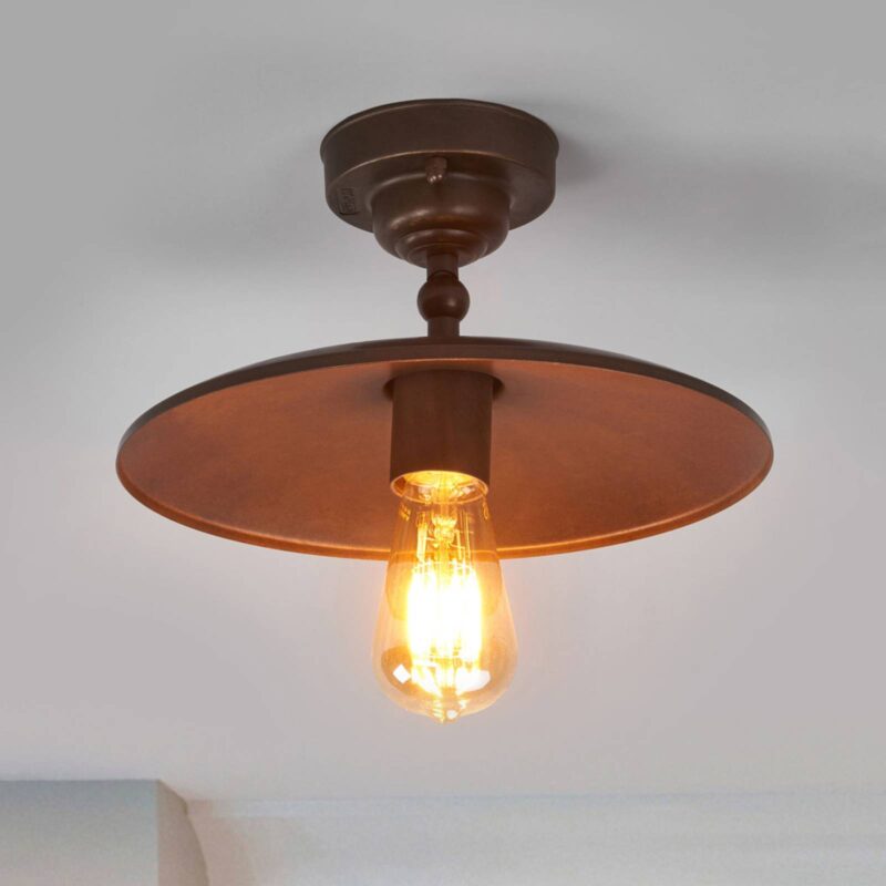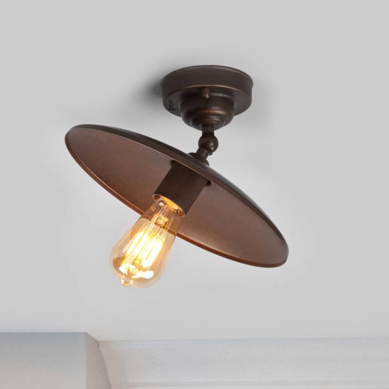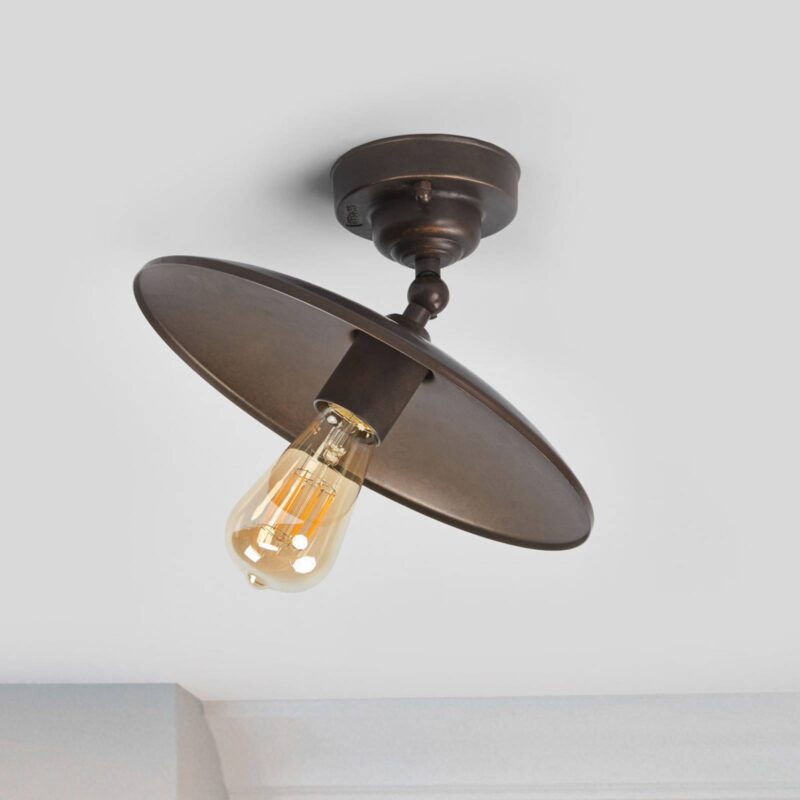 Stropné svietidlo Alice z robustnej mosadze Stropné svietidlo ALICE je vyrobené z leštenej mosadze, t. j. jeho povrch je leštený, a teda pomerne hladký. Má tvar dosky a dá sa otáčať v ľubovoľnom smere. Stropné svietidlo je chránené proti korózii spôsobenej soľou a cudzími predmetmi (12,5 mm) s krytím IP20. Elegantný bytový doplnok pre milovníkov vidieckeho štýlu.