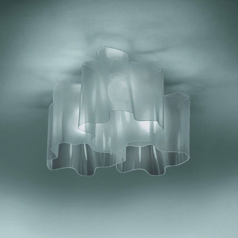 Veľké, svetlé stropné svietidlo Logico – 66 cm x 66 cm Stropné svietidlo Logico s nezvyčajne tvarovaným skleneným tienidlom sa odporúča na ambientné osvetlenie obývacích izieb a chodieb, ako aj na plošné osvetlenie väčších miestností. Tienidlo je vyrobené z ústami fúkaného skla a vďaka jeho tvaru nezostane svietidlo Logico nepovšimnuté, ani keď nie je zapnuté. Keď je svetlo zapnuté, okolie sa kúpe v jasnom svetle, ktoré na jednej strane svieti priamo nadol a na druhej strane nepriamo osvetľuje strop. Rozptýlené svetlo preniká cez sklo aj zboku – Uhol vyžarovania: 3 x 120° Výrobca svietidiel Artemide, pre ktorého dizajnéri Gerhard Reichert a Michele De Lucchi vytvorili toto svietidlo, neprestáva udivovať svojimi dizajnovými produktmi, ktoré vyvolávajú celosvetový rozruch.