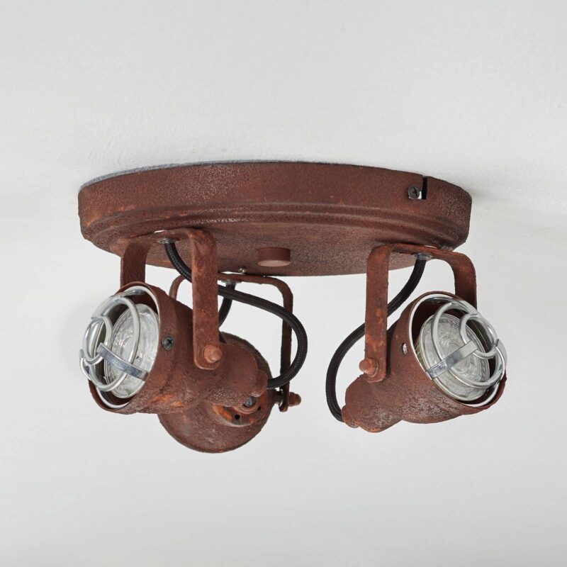 Super trendové a variabilne nastaviteľné stropné svietidlo Bente v hrdzavom vzhľade V prípade tohto stropného svietidla ide o osvetľovací doplnok, ktorý zaručuje nielen optimálne osvetlenie miestnosti, ale tiež dizajn, ktorý si všimne úplne každý. Rustikálny dizajn majú nielen tri voľne pohyblivé reflektorové svietidlá, ale aj okrúhly stropný držiak, ktorý je zahalený originálnou hrdzavou povrchovou úpravou, čím svietidlo získava svoj mimoriadne industriálny charakter.