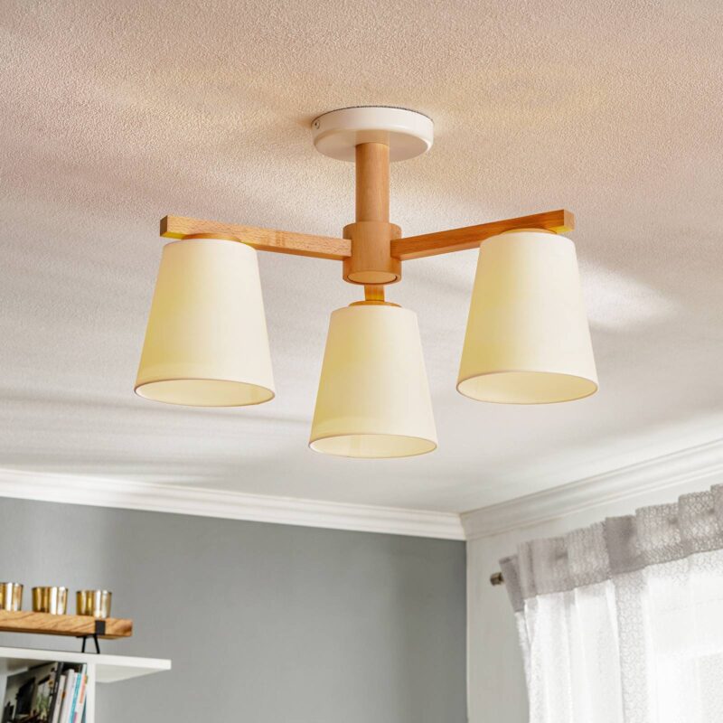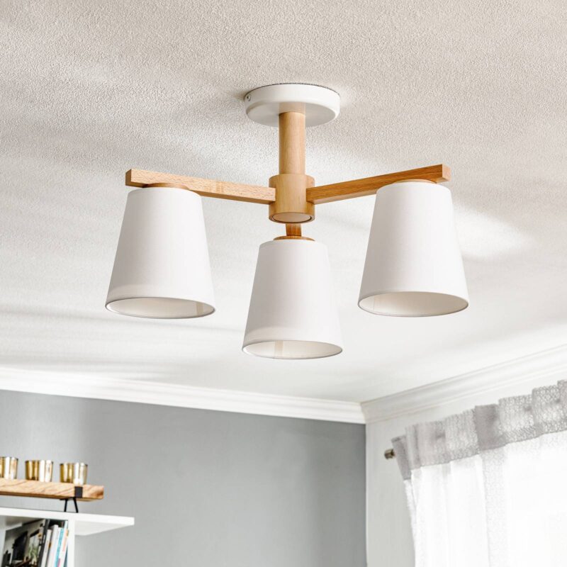 Stropné svietidlo Canditia: 3-plameňová elegancia so škandinávskym nádychom Stropné svietidlo Canditia spája moderný dizajn so škandinávskou jednoduchosťou a dodáva štýl každému priestoru. Je vyrobené z kvalitného dreva a látky a žiari v svetlom odtieni dreva a bielej farbe. Táto kombinácia dodáva svietidlu prirodzený a zároveň elegantný vzhľad, ktorý harmonicky zapadá do obývacích izieb, spální, predsiení a jedální. 3-plameňová konštrukcia zaisťuje rovnomerné a príjemné rozloženie svetla, ktoré vytvára príjemnú atmosféru. Osobitným rysom svietidla Canditia je jeho jedinečnosť: každé drevené svietidlo je jedinečné, s individuálnymi rozdielmi v farbe a štruktúre, ktoré podčiarkujú prirodzenú krásu dreva. Svietidlo je stmievateľné, ak sa používa externý stmievač, čo umožňuje dodatočnú flexibilitu pri navrhovaní osvetlenia. Vyrobené v Európe, svietidlo Canditia je synonymom kvality a remeselného majstrovstva, ktoré je cítiť v každom detaile.