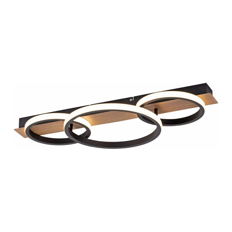 Stropné svietidlo čierne s drevom vrátane LED 3-žiarovkové – Marien