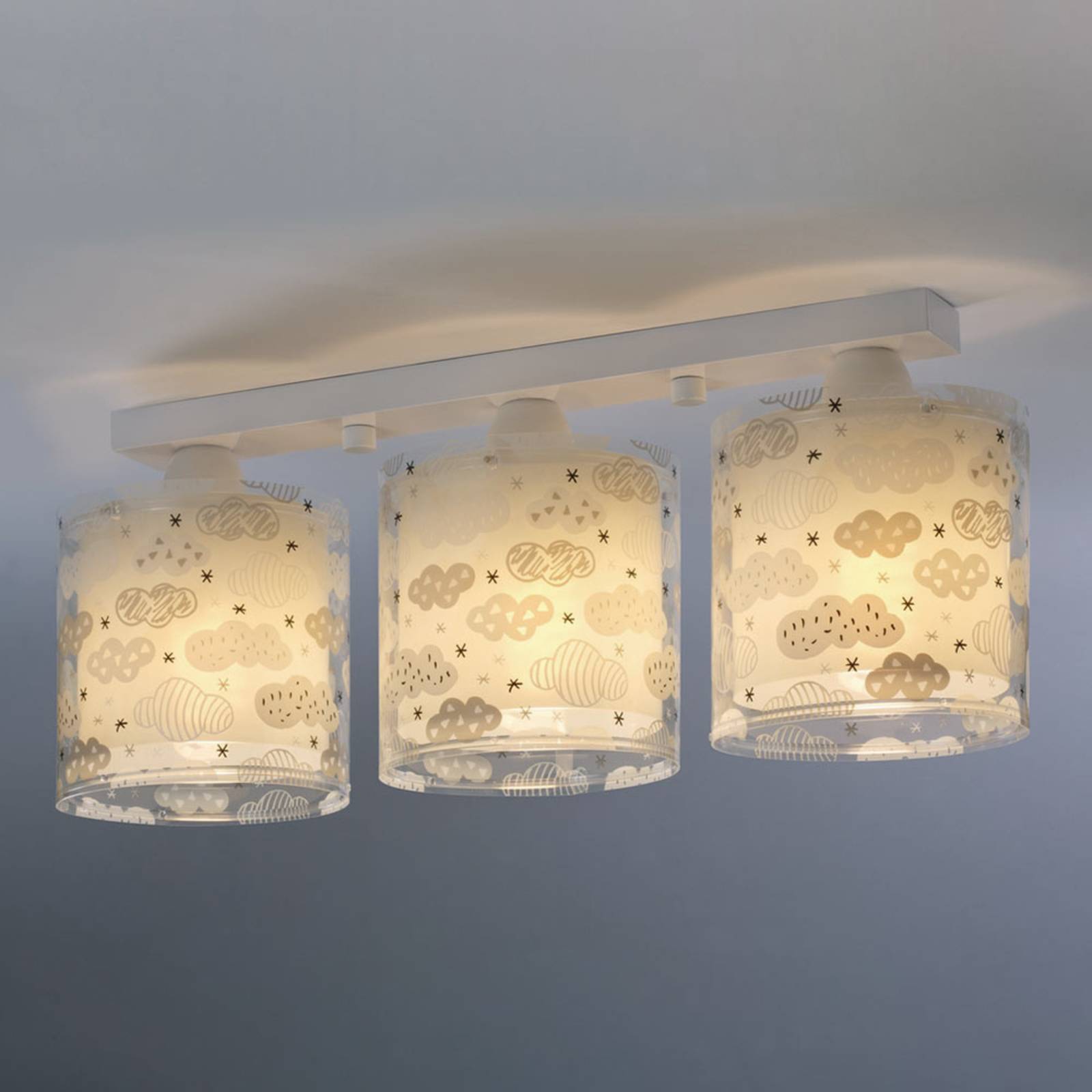 Stropné svietidlo Clouds do detskej izby 3-svetelné sivé