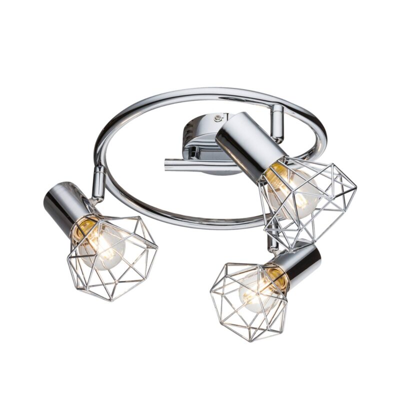 Okrúhle stropné svietidlo Daiva s pohyblivými reflektormi – s tromi zdrojmi svetla Existuje mnoho stropných svietidiel s pohyblivými reflektormi. Stropné svietidlo Daiva je nezvyčajné už na prvý pohľad: na každej objímke reflektora je malá kovová klietka, ktorá slúži ako tienidlo a cez ktorú vidieť žiarovku. Do objímky E14 sa preto odporúča zaskrutkovať žiarovku s maximálnym výkonom 40 wattov, napr. žiarovku s vláknom. Vhodné žiarovky si môžete vybrať a objednať v časti s príslušenstvom.