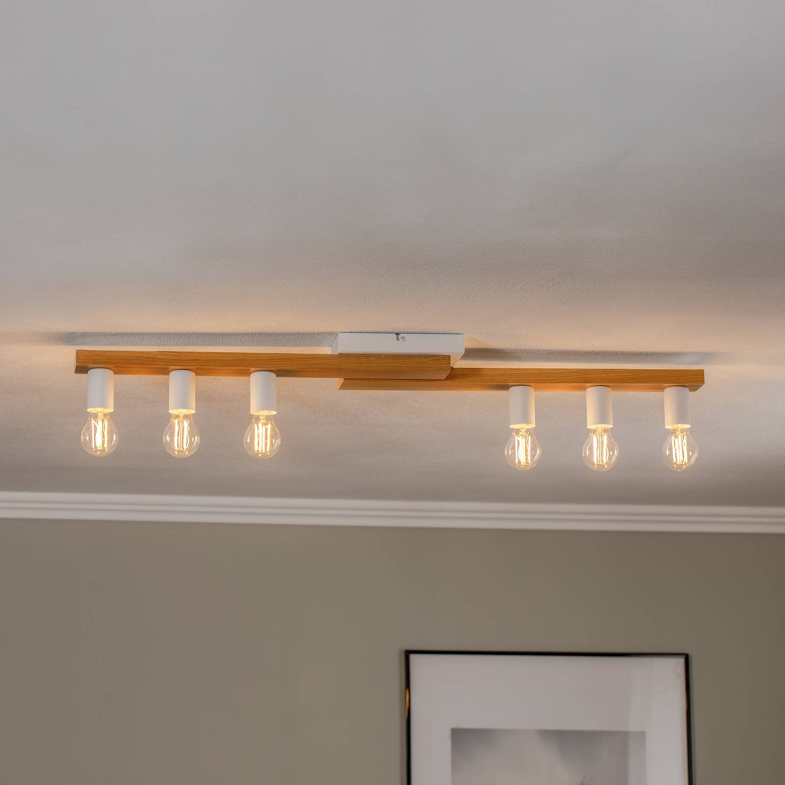 Stropné svietidlo Envostar Laurent, drevo/biela, 6 plamienkov