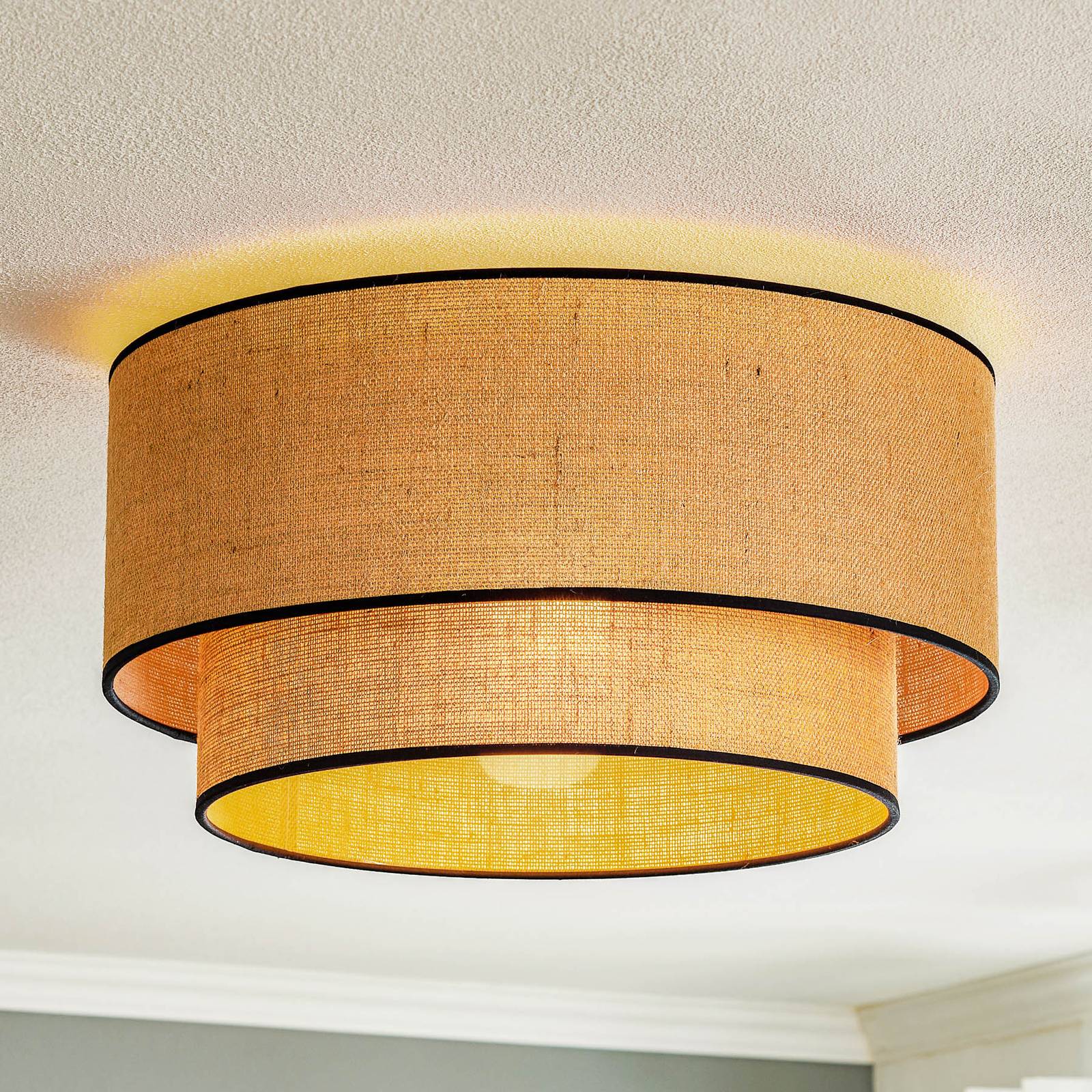 Stropné svietidlo Euluna Boho juta & čierna, prírodná/čierna, Ø45cm