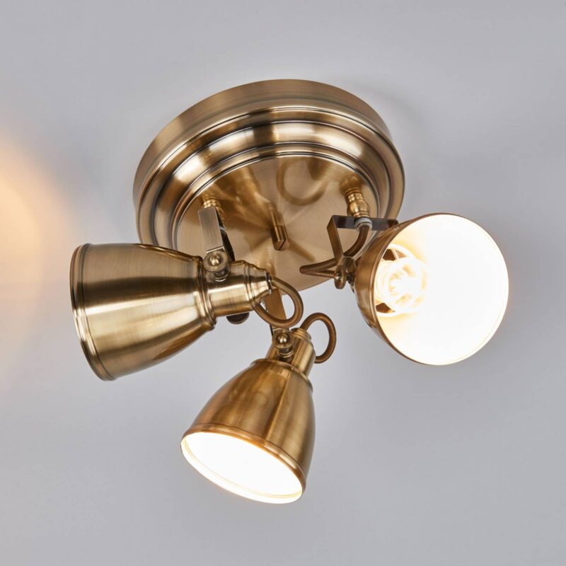 Flexibilné a starožitné – stropné svetlo FJÄLLBACKA Vizuálne farba stropného svetla pripomína starodávne časy a môže tak generovať príjemné svetlo, ktoré osvetlí miestnosť útulným dojmom. Použitím celkovo troch reflektorov, ktoré je možné flexibilne vyrovnať, je možné každú izbu dokonale osvetliť.
