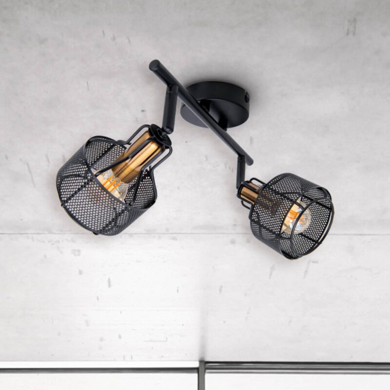 Stropné svietidlo Foro, 2-plameňové, čierna/zlatá